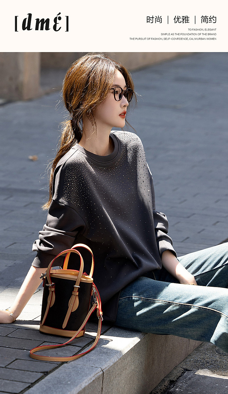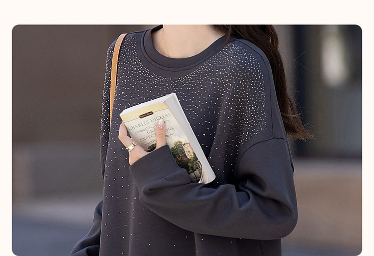 商品名称:【好搭无压力】秋简约风舒适280G空气层时髦烫钻卫衣女上衣 400513