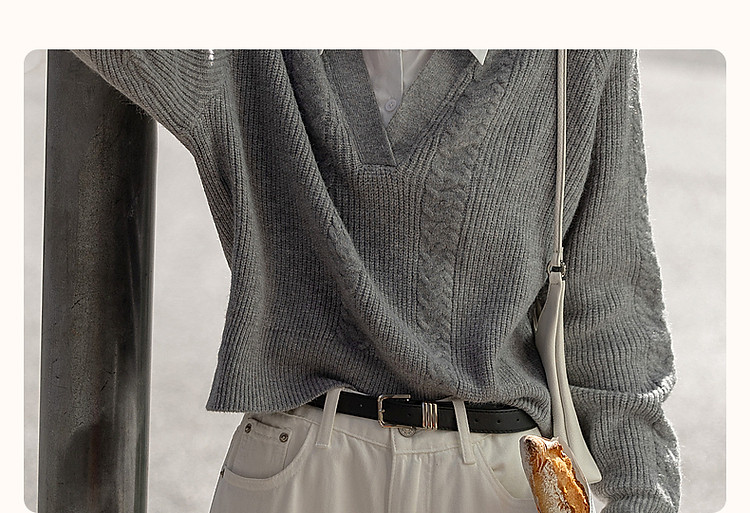 商品名称:【云朵线衫】春秋简约风通勤拼接翻领舒柔纤绒纱遮肉针织衫女上衣 328385