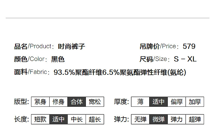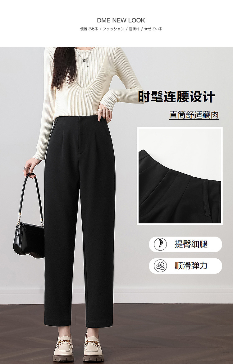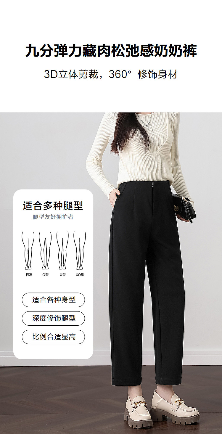 商品名称:【松弛感奶奶裤】秋简约风连腰哈伦裤弹力藏肉九分裤小直筒休闲裤 281729