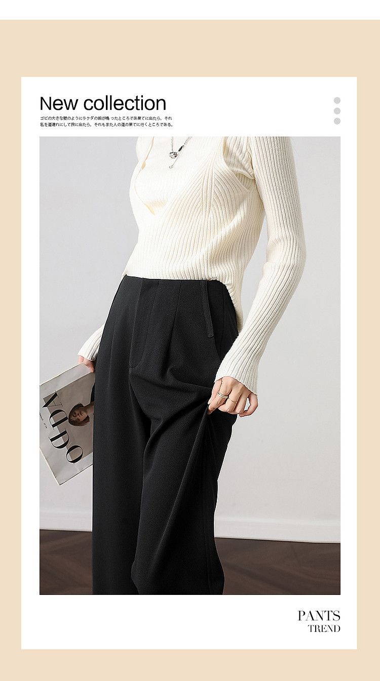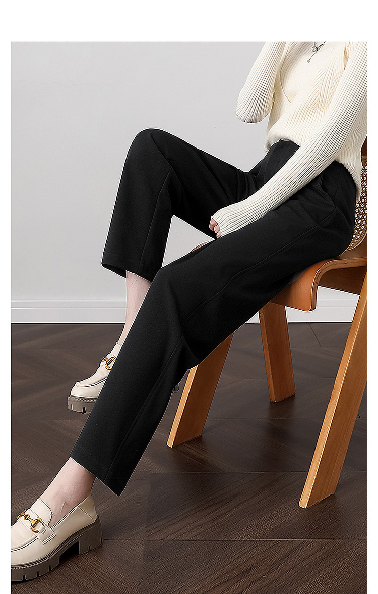 春装 进口精纺呢宽松垂感显瘦直筒裤西装裤阔腿裤女 791439