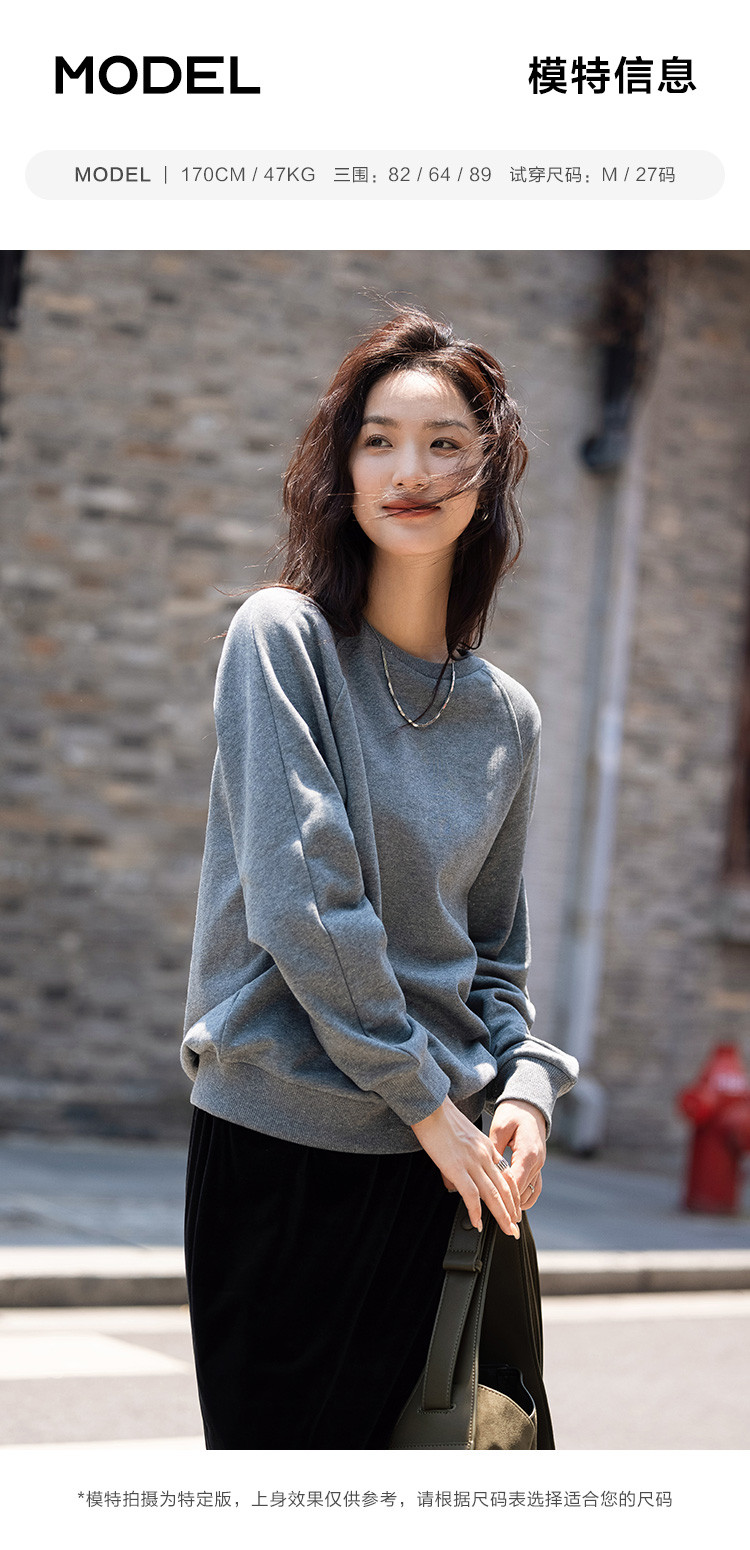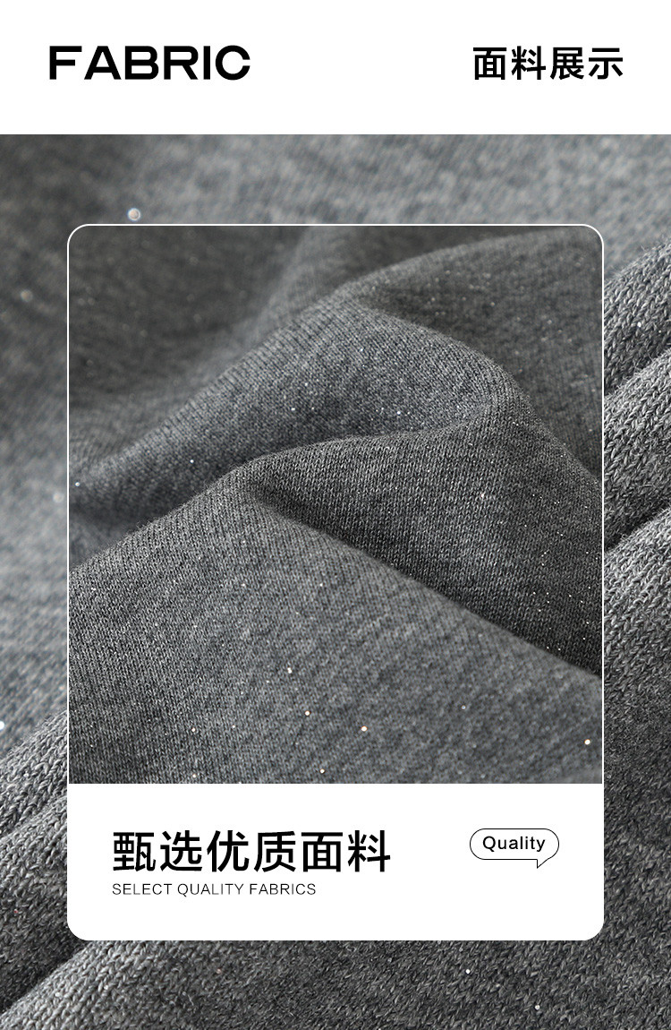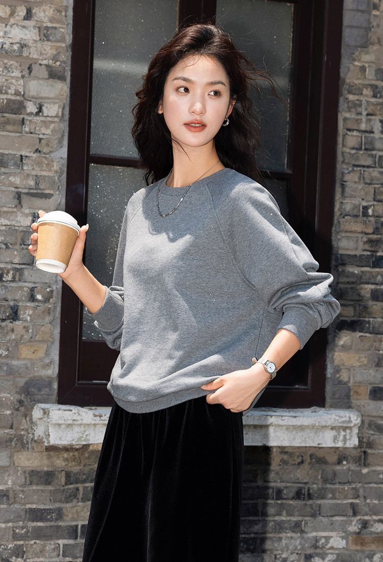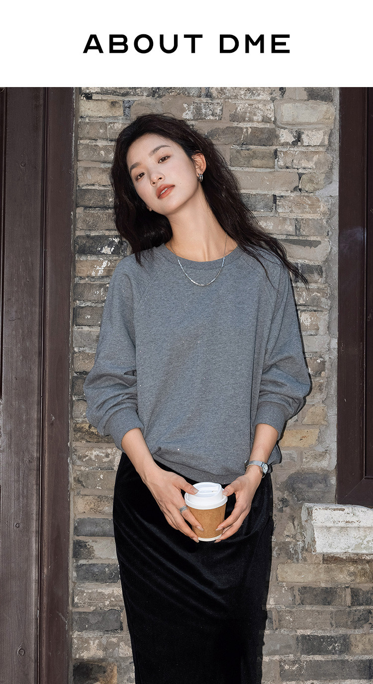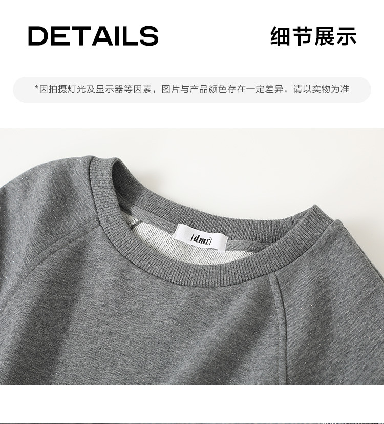 【银河细闪卫衣】秋简约深麻灰色圆领套头舒适日常上衣女 001666