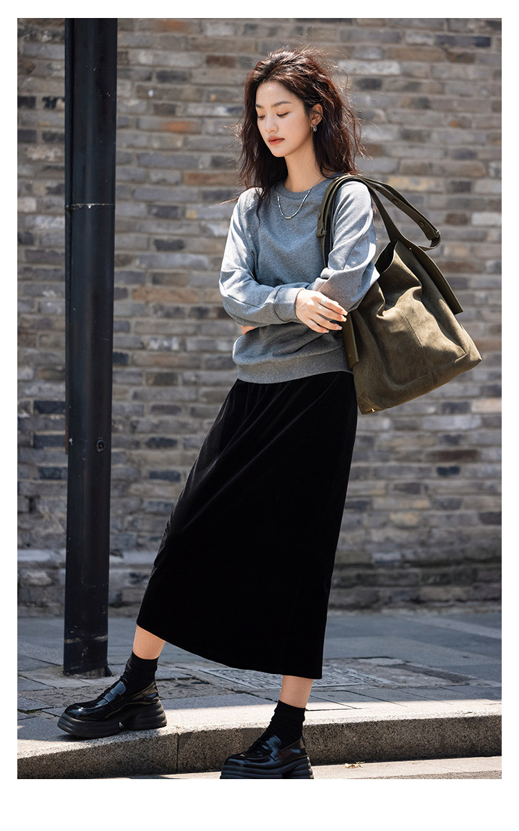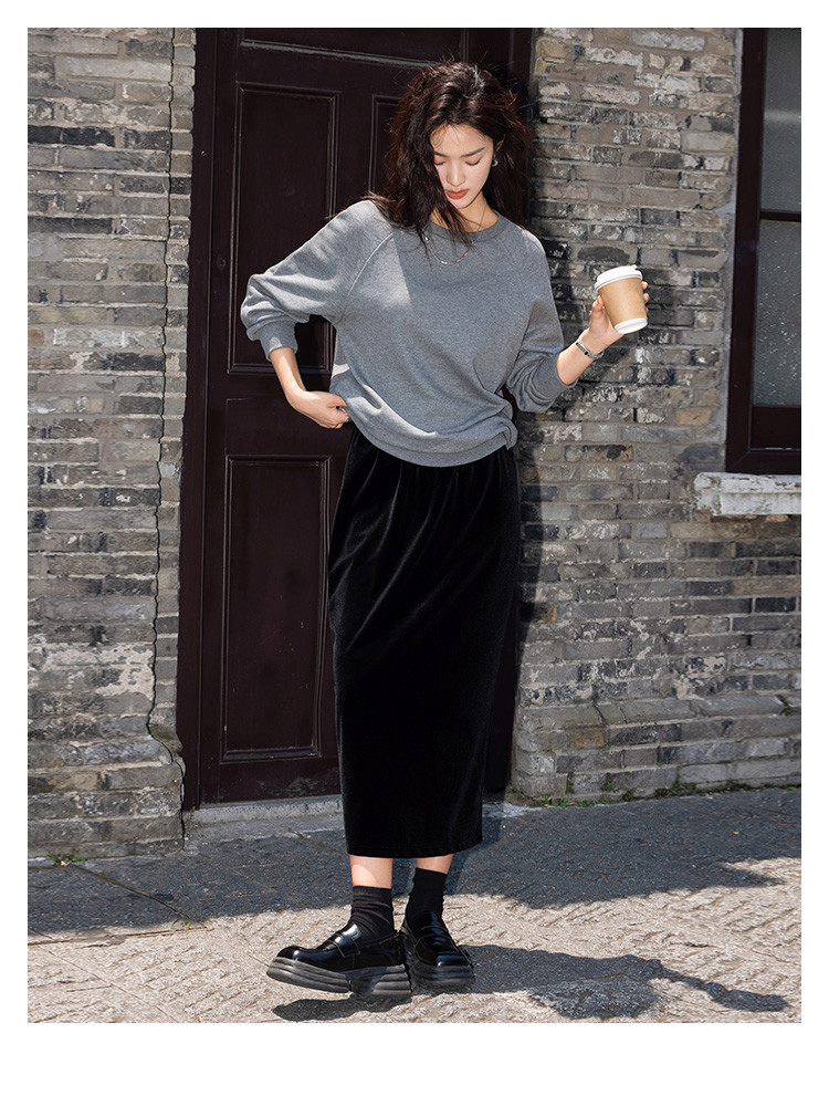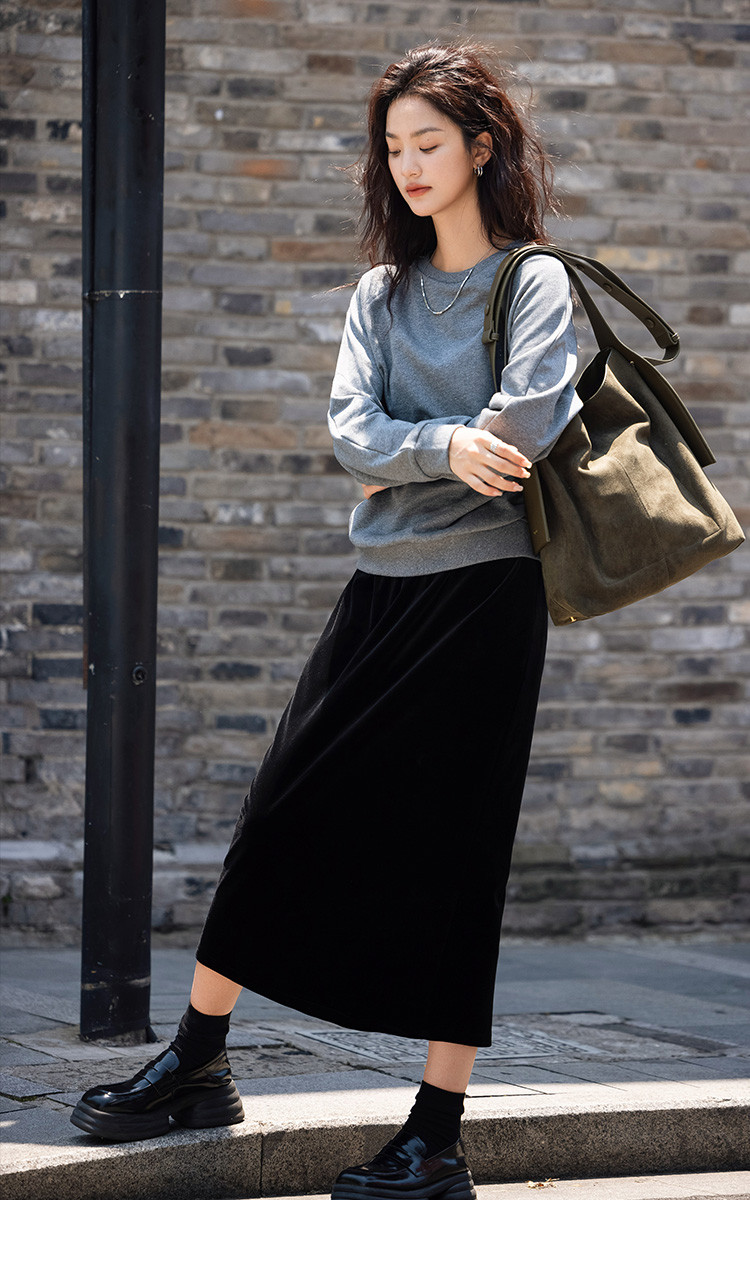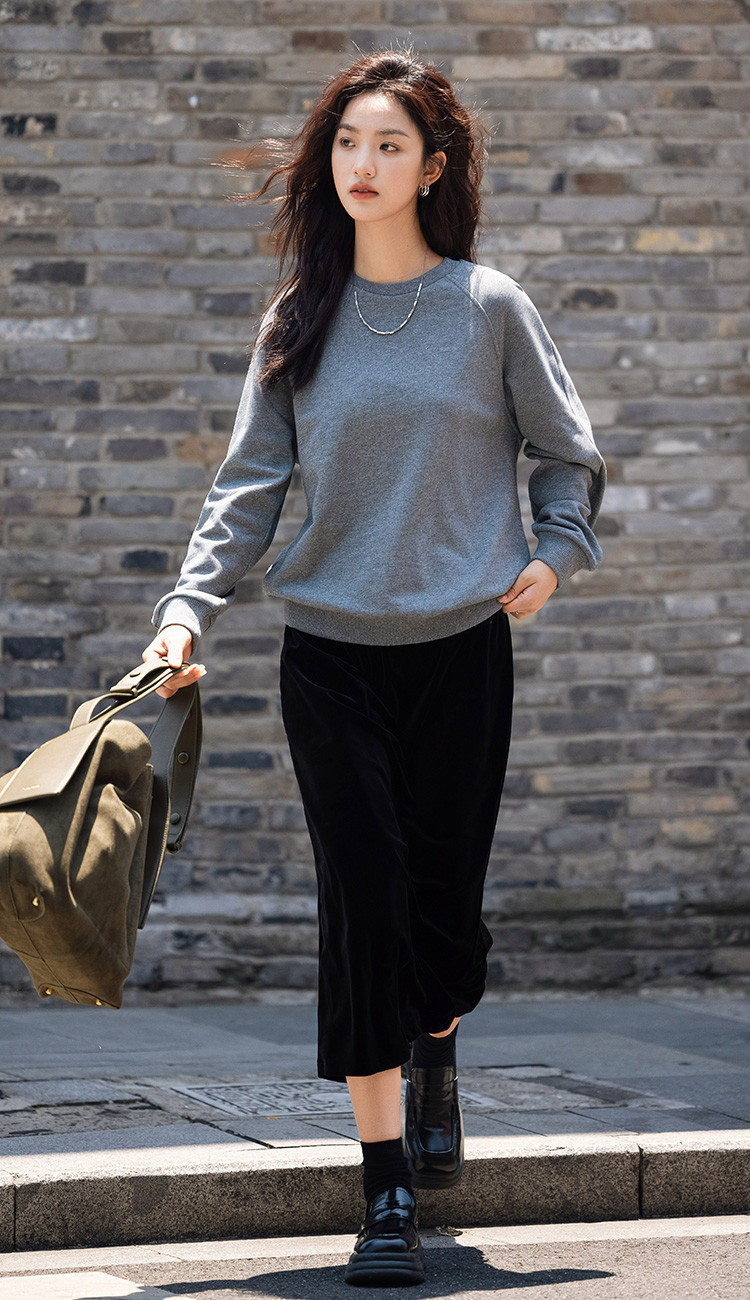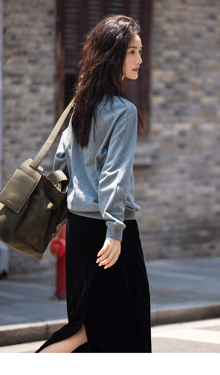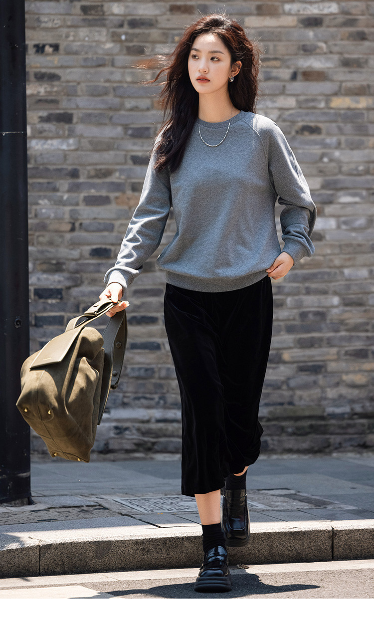 【银河细闪卫衣】秋简约深麻灰色圆领套头舒适日常上衣女 001666