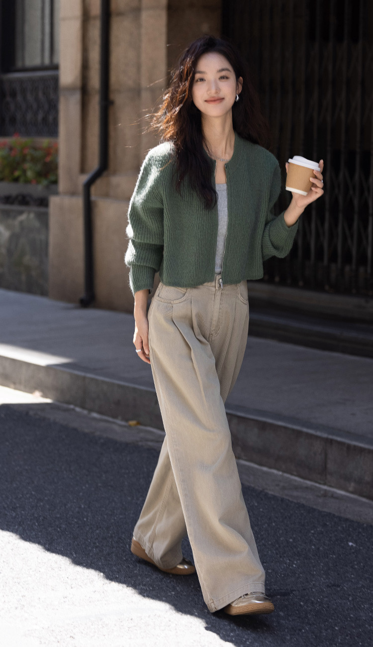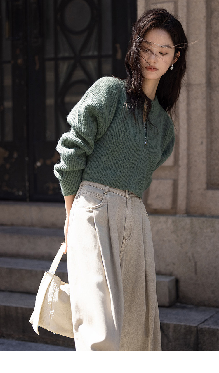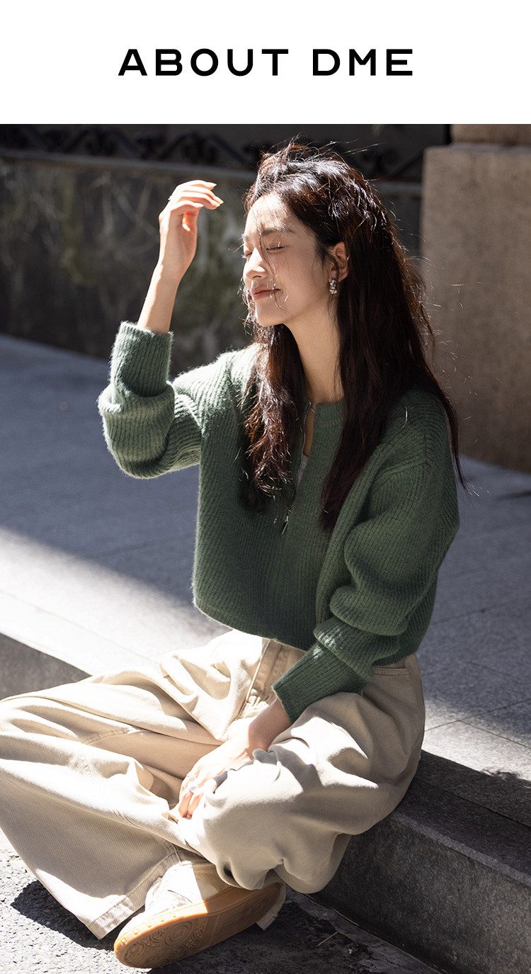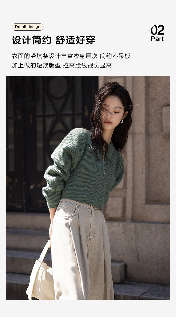 【糯叽叽短款针织衫】秋圆领拉链设计基础长袖针织外套女 132738