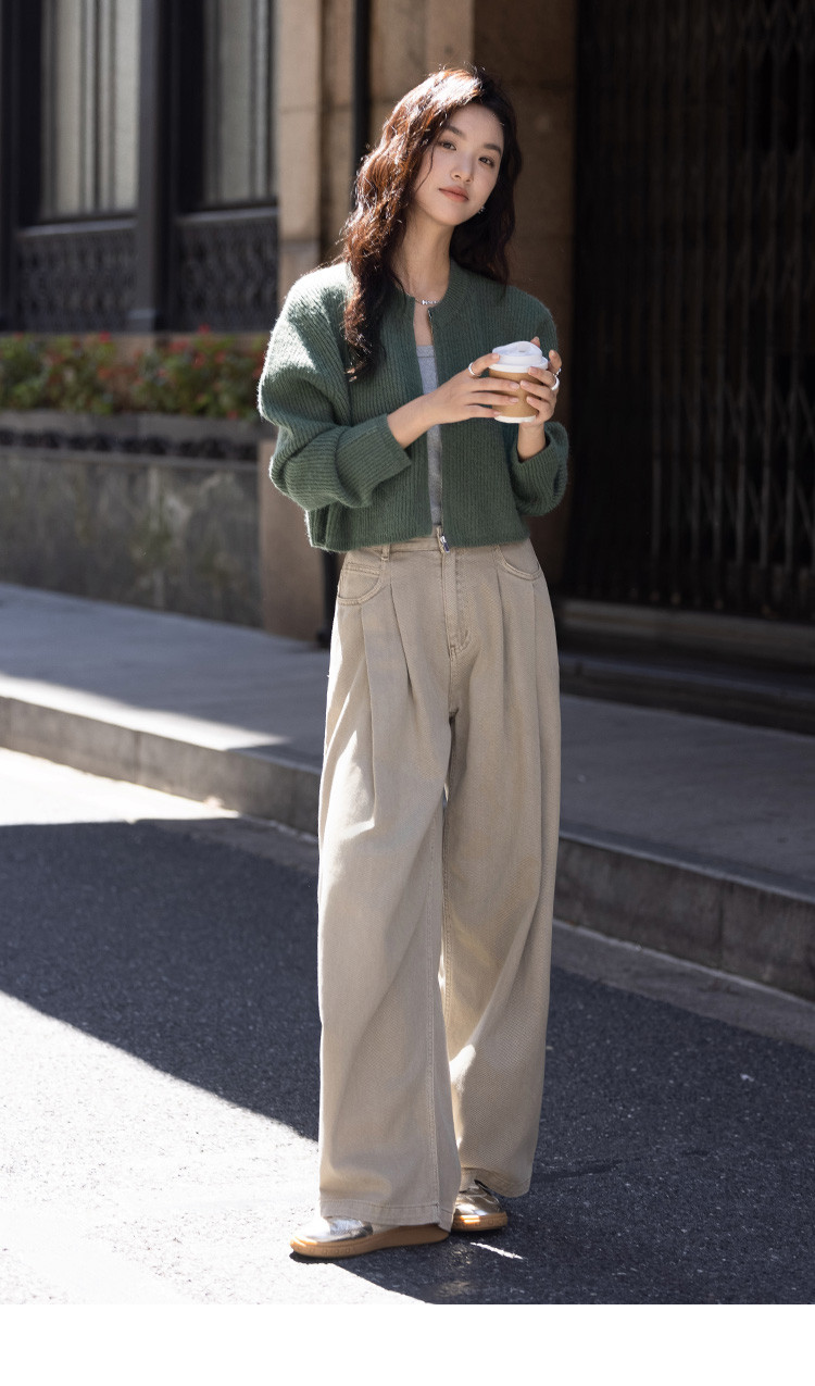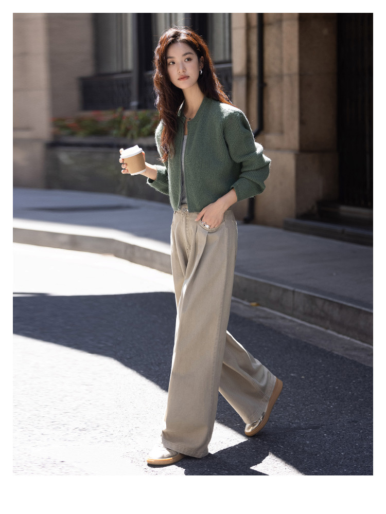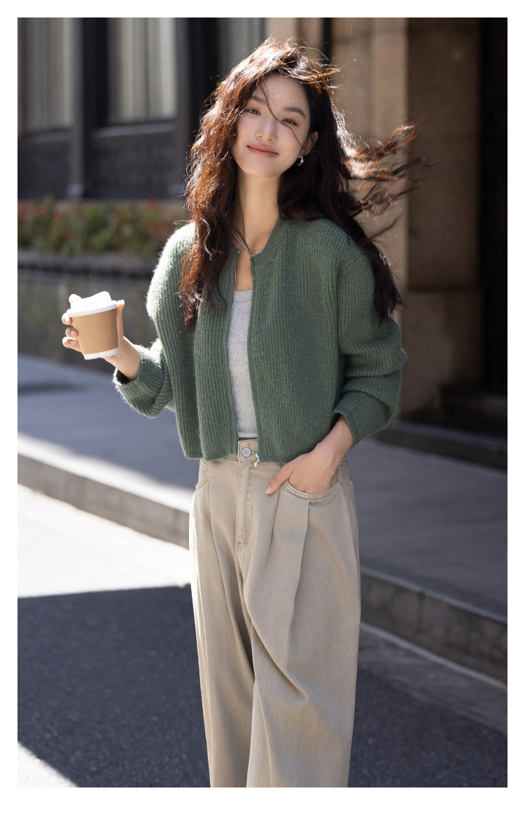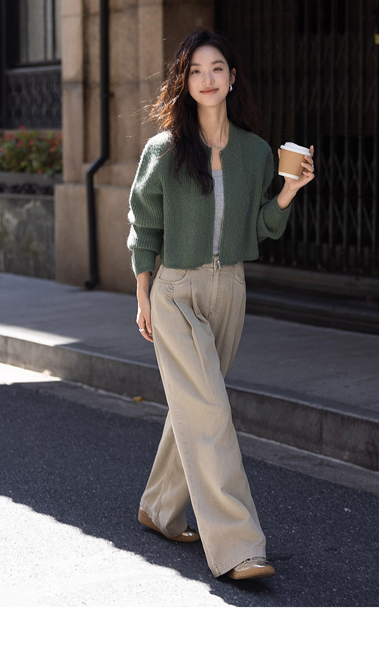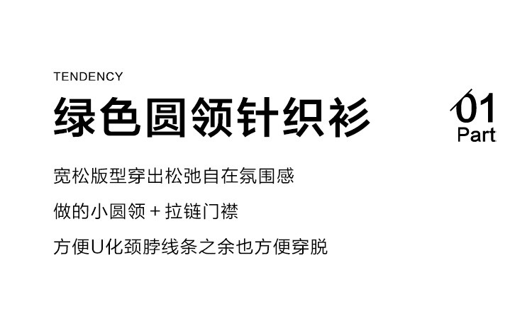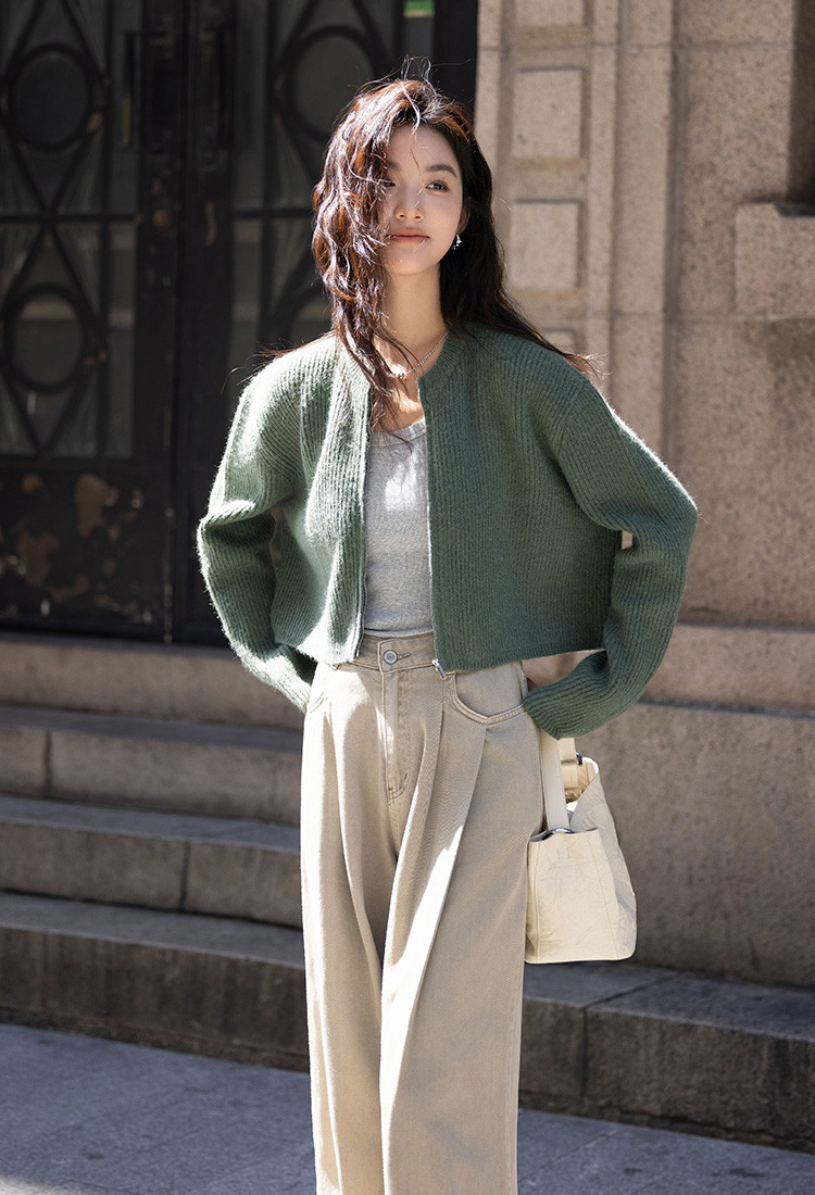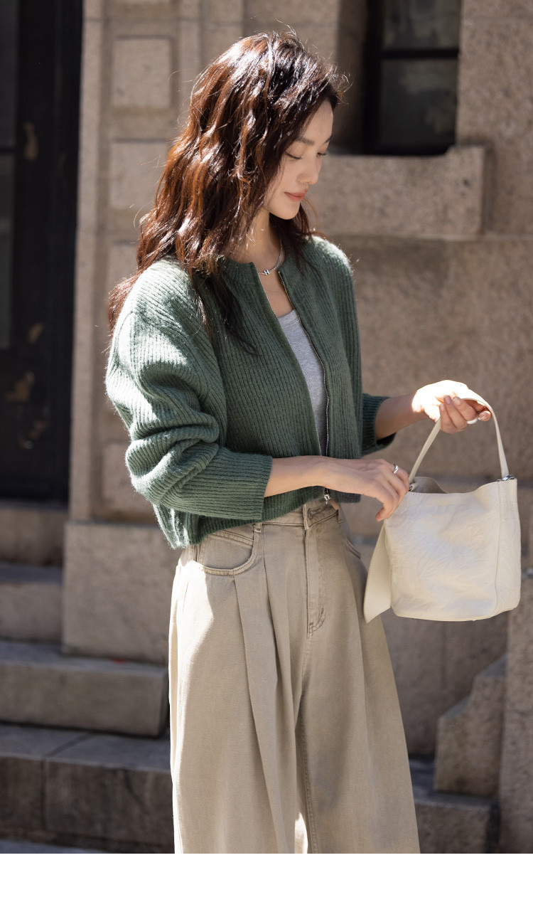 商品名称:【糯叽叽短款针织衫】秋圆领拉链设计基础长袖针织外套女 132738