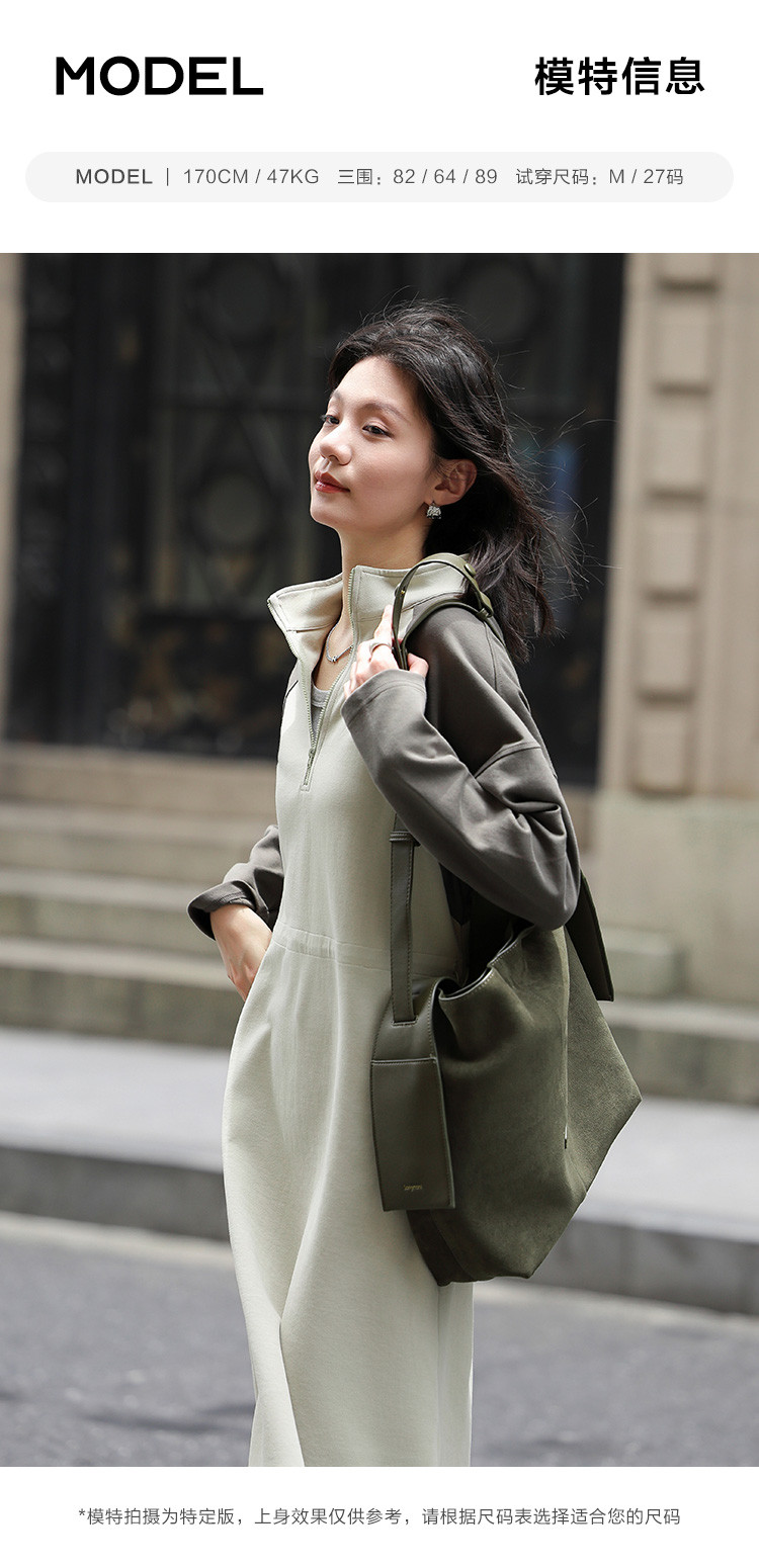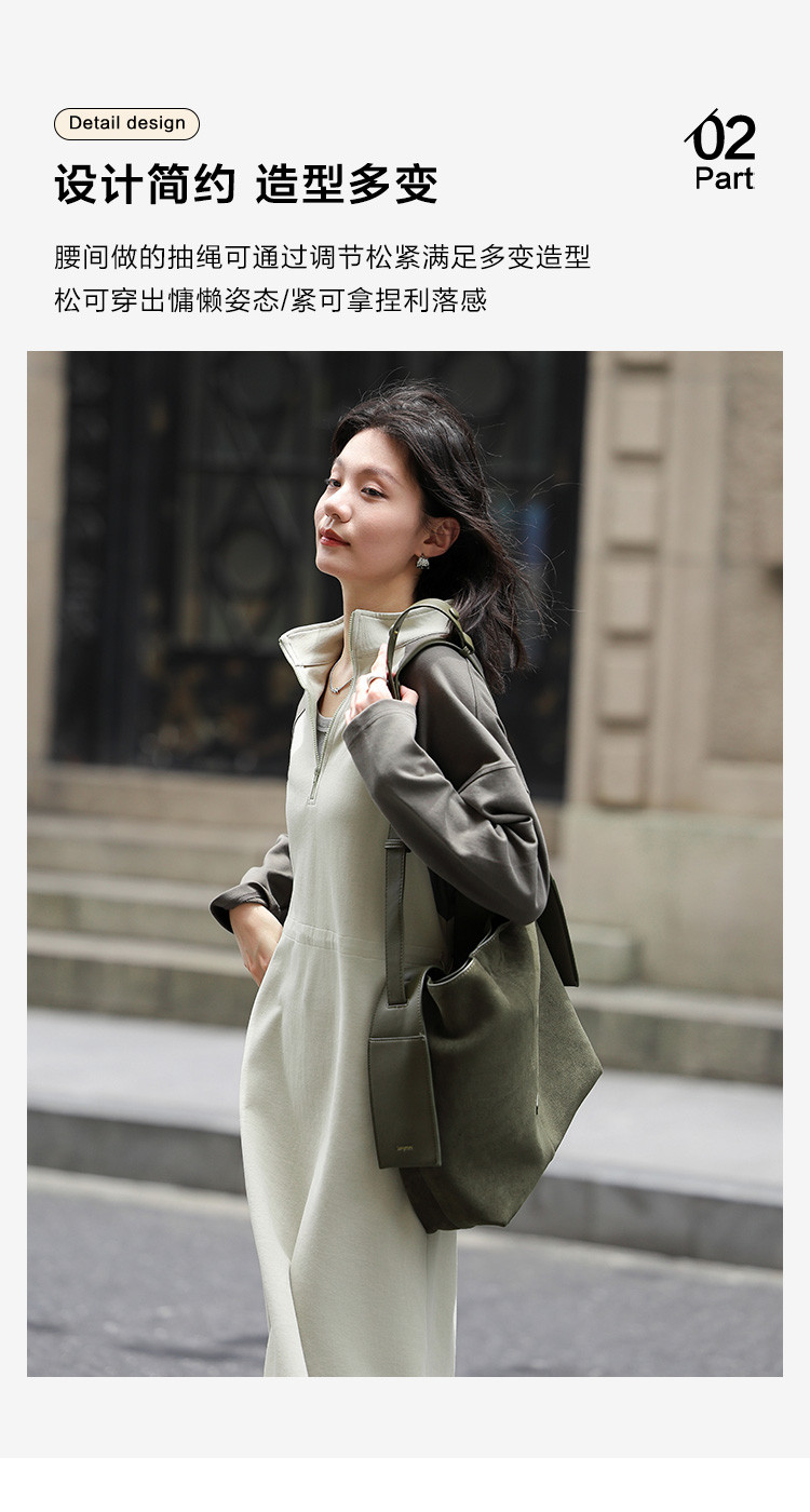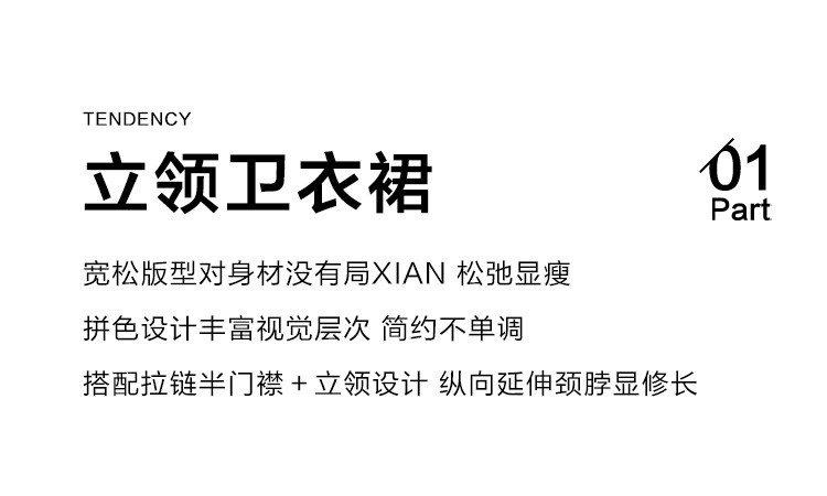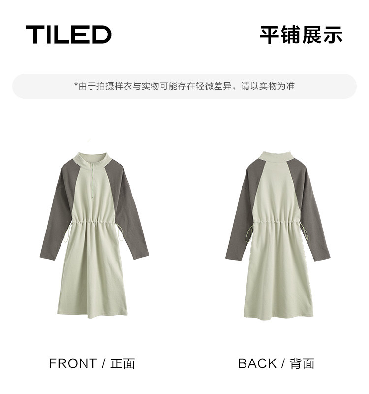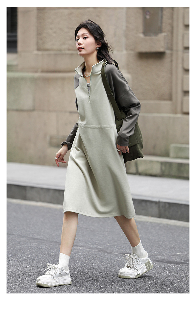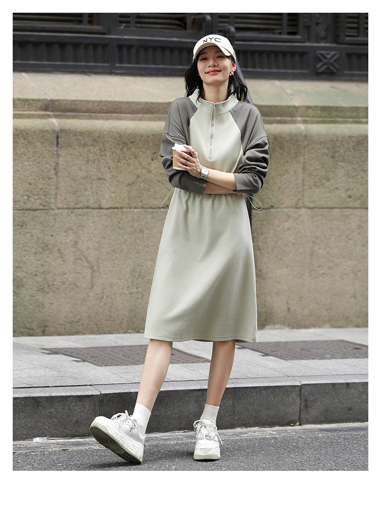 商品名称:【立领撞色长袖卫衣裙】秋半开门襟腰部抽绳中长款连衣裙 083586