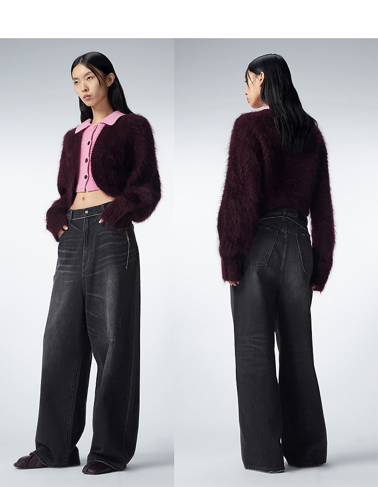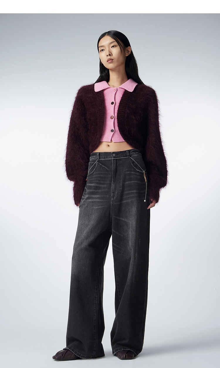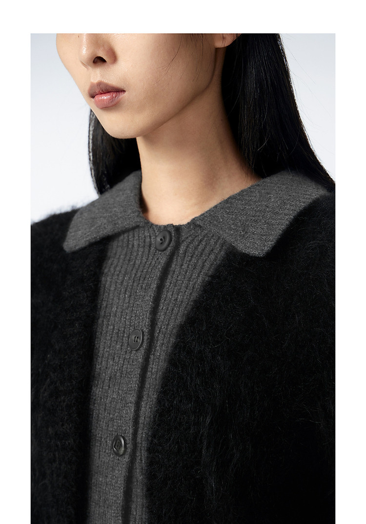 冬毛针织衫翻领拼接毛衫女 385035