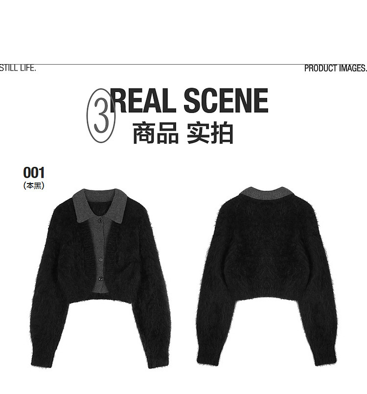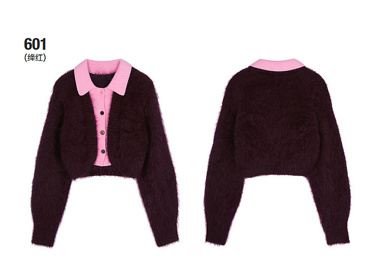 商品名称:冬毛针织衫翻领拼接毛衫女 385035