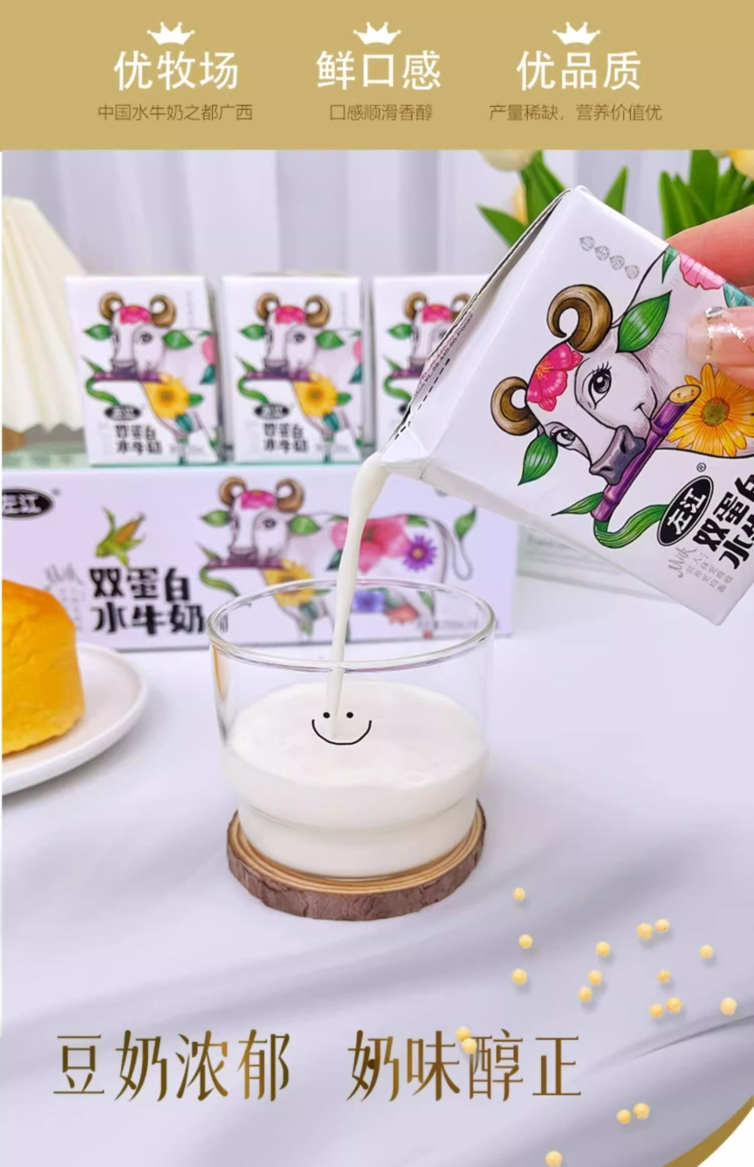 商品名称:左江 双蛋白水牛奶200ml*8盒整箱动物植物双重营养学生青少年早餐 新牛奶