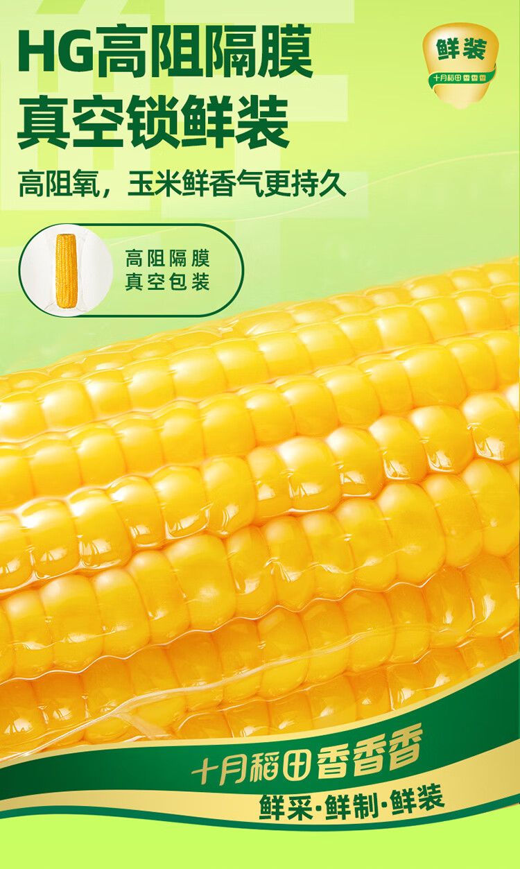 商品名称:十月稻田 东北玉米 鲜食黄糯玉米1.32kg 220g*6根