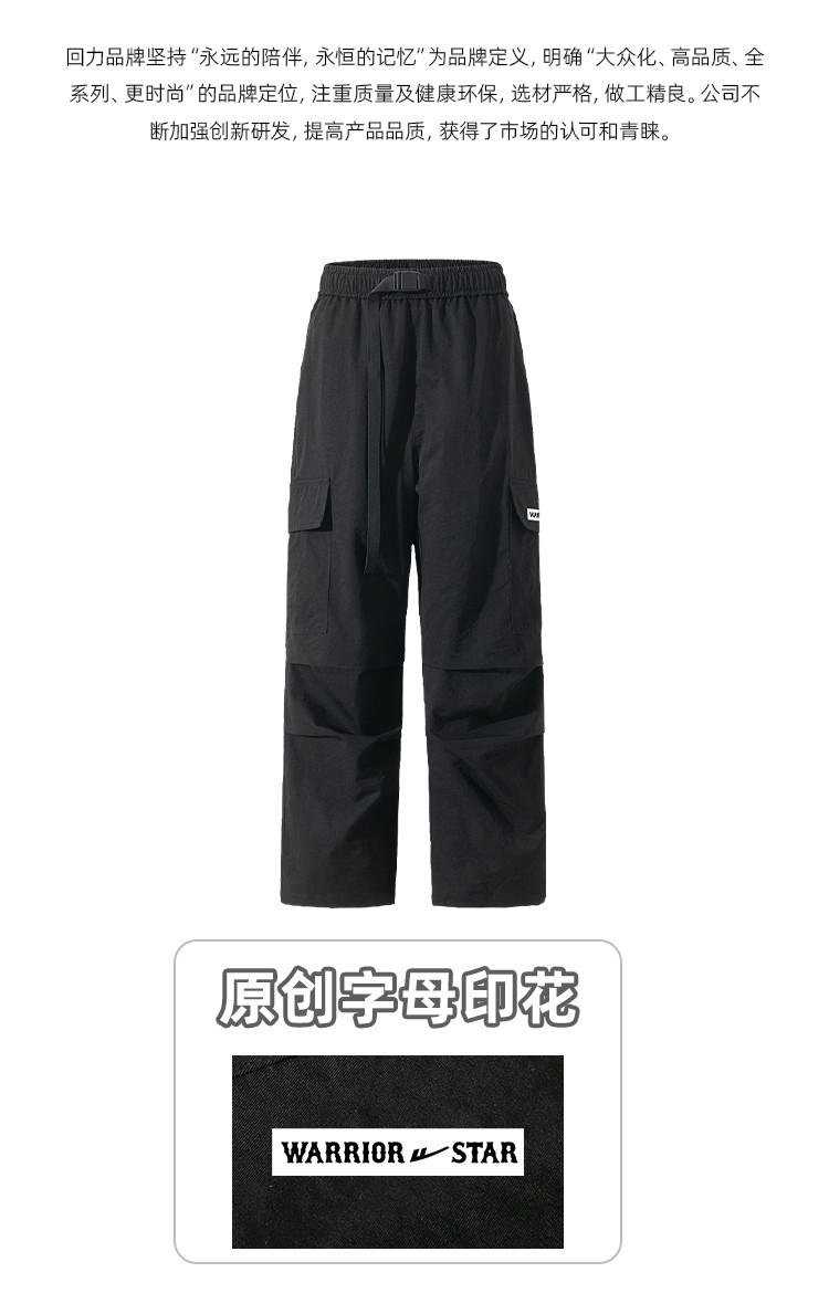 商品名称:美式阔腿伞兵工装裤男女潮牌宽松复古运动裤户外登山徒步休闲长裤 287699