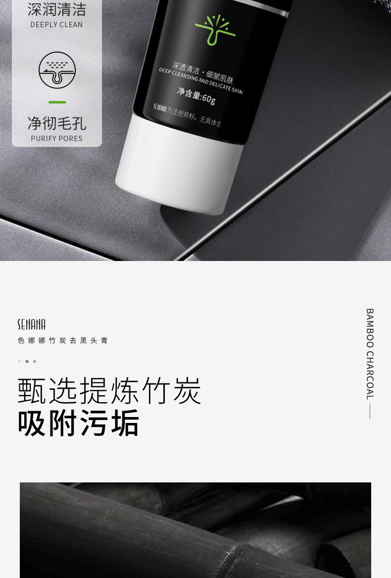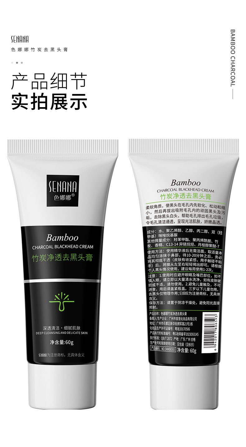 商品名称:色娜娜竹炭净透去黑头膏60g