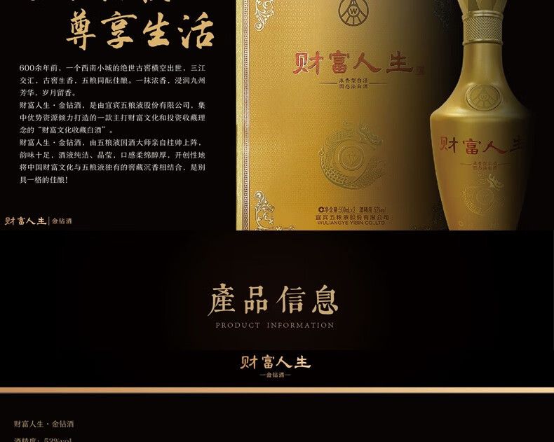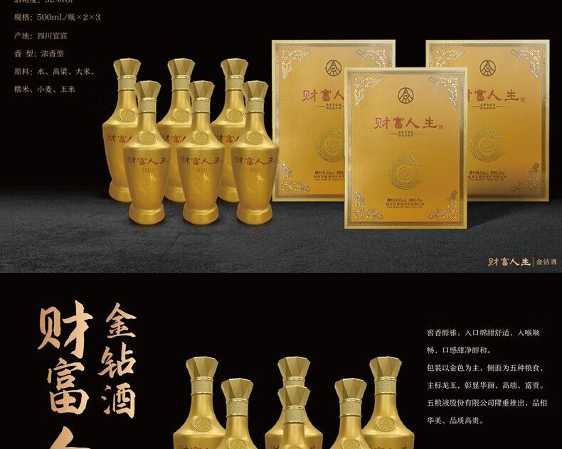 商品名称:五粮液 财富人生金钻【500ml*2瓶】