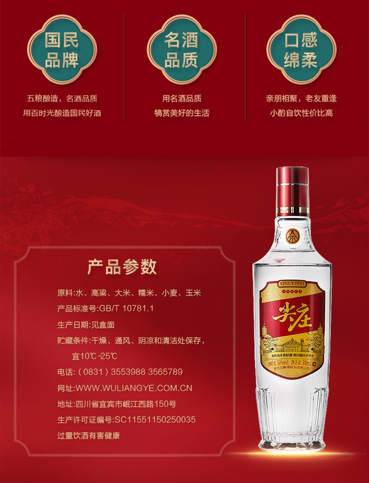 商品名称:五粮液 尖庄·红优 50度浓香型白酒500ml
