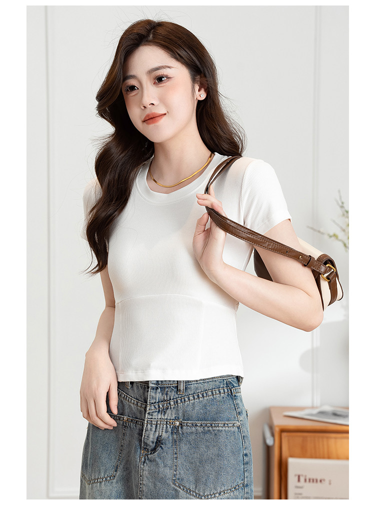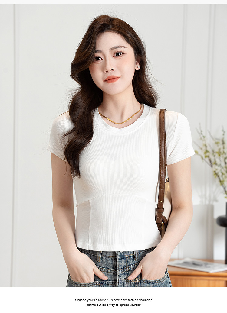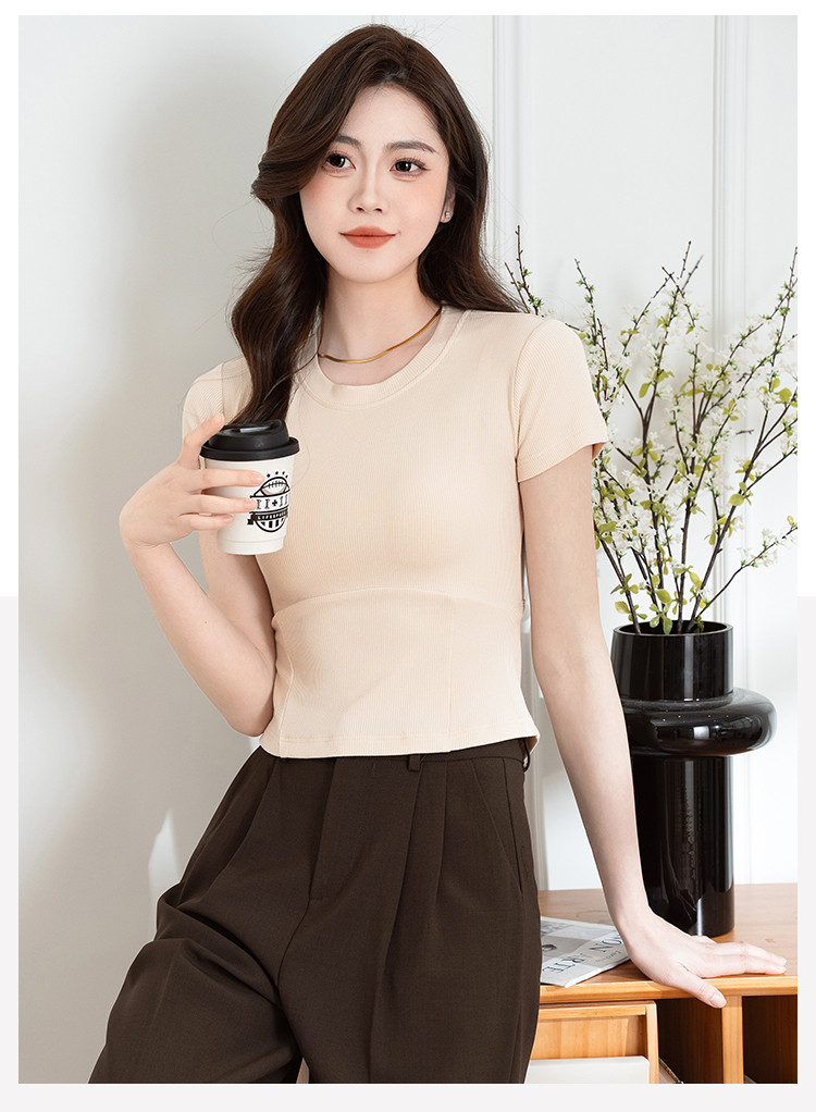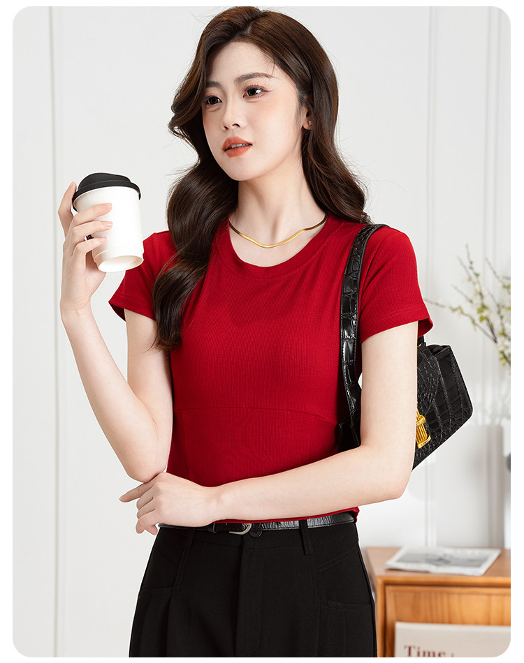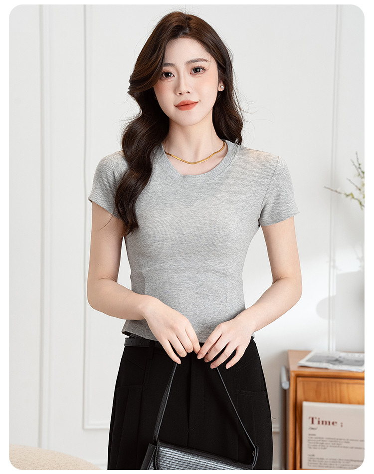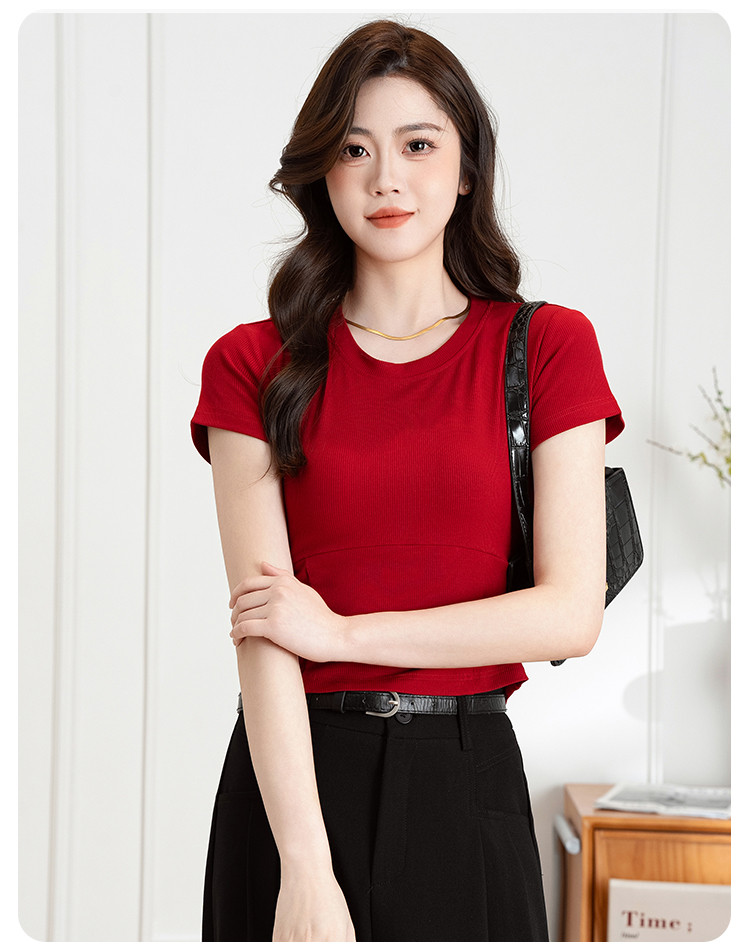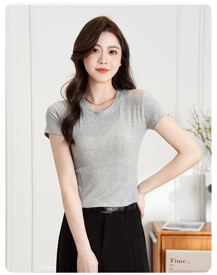 商品名称:【修身显瘦】夏季纯色圆领短袖T恤女微弹舒适休闲百搭时尚上衣女 692289