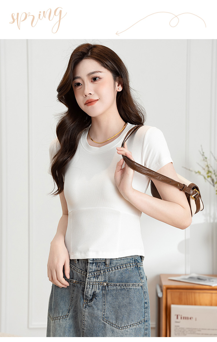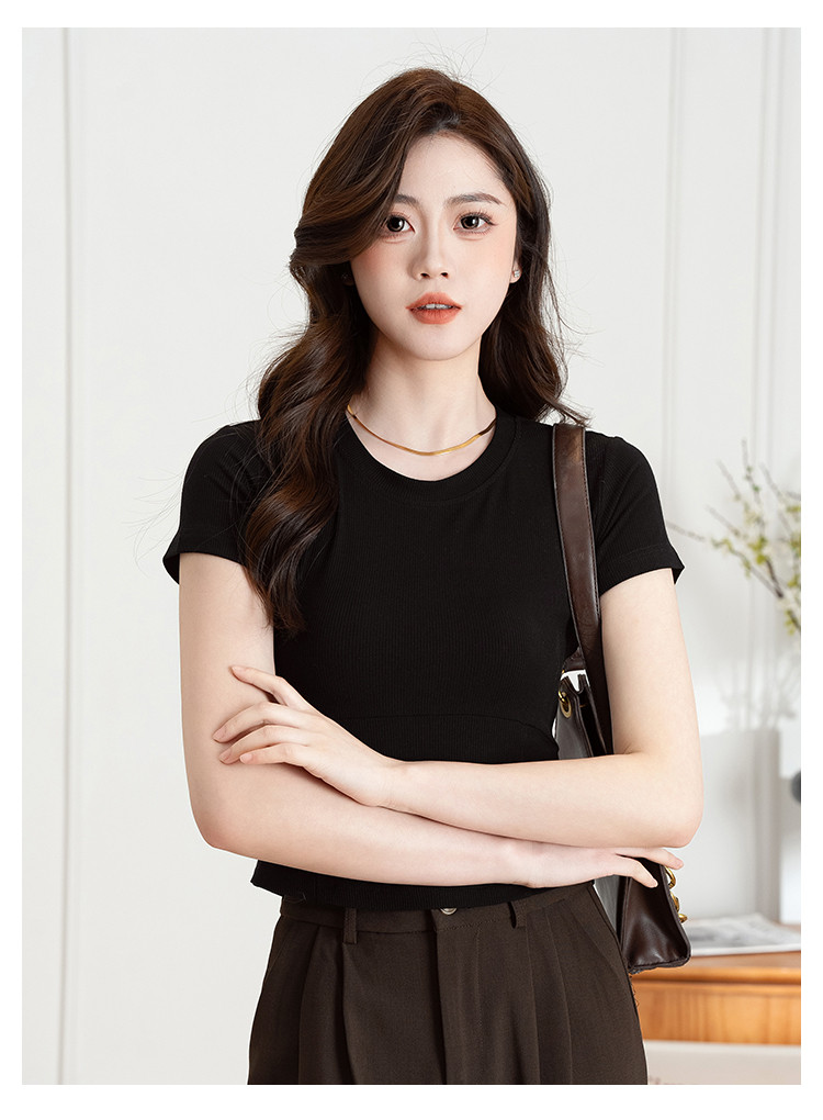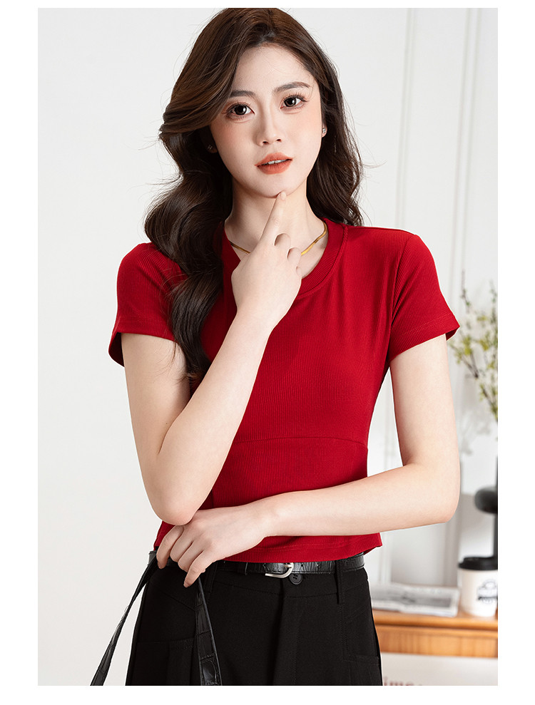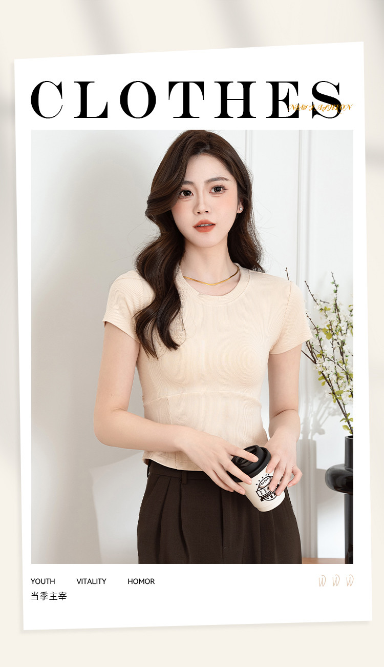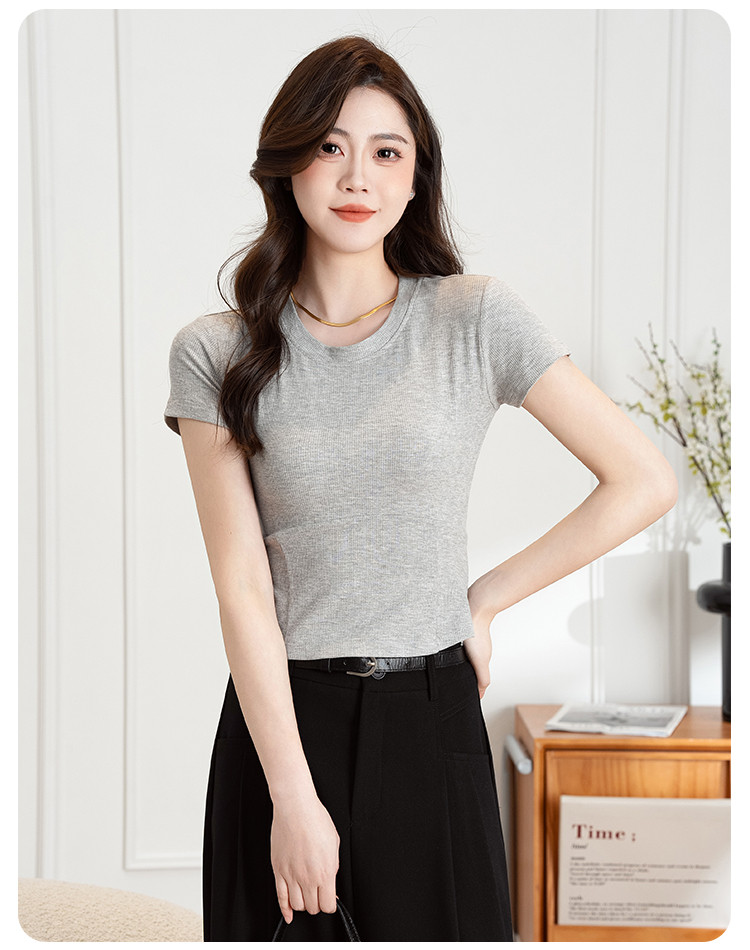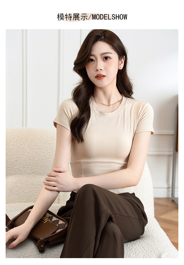 【修身显瘦】夏季纯色圆领短袖T恤女微弹舒适休闲百搭时尚上衣女 692289