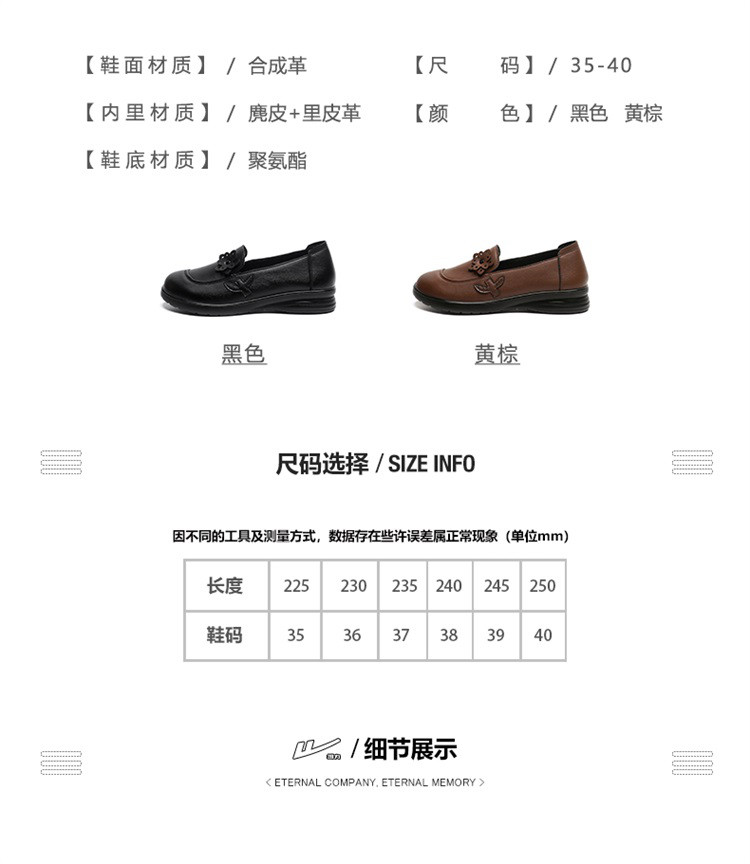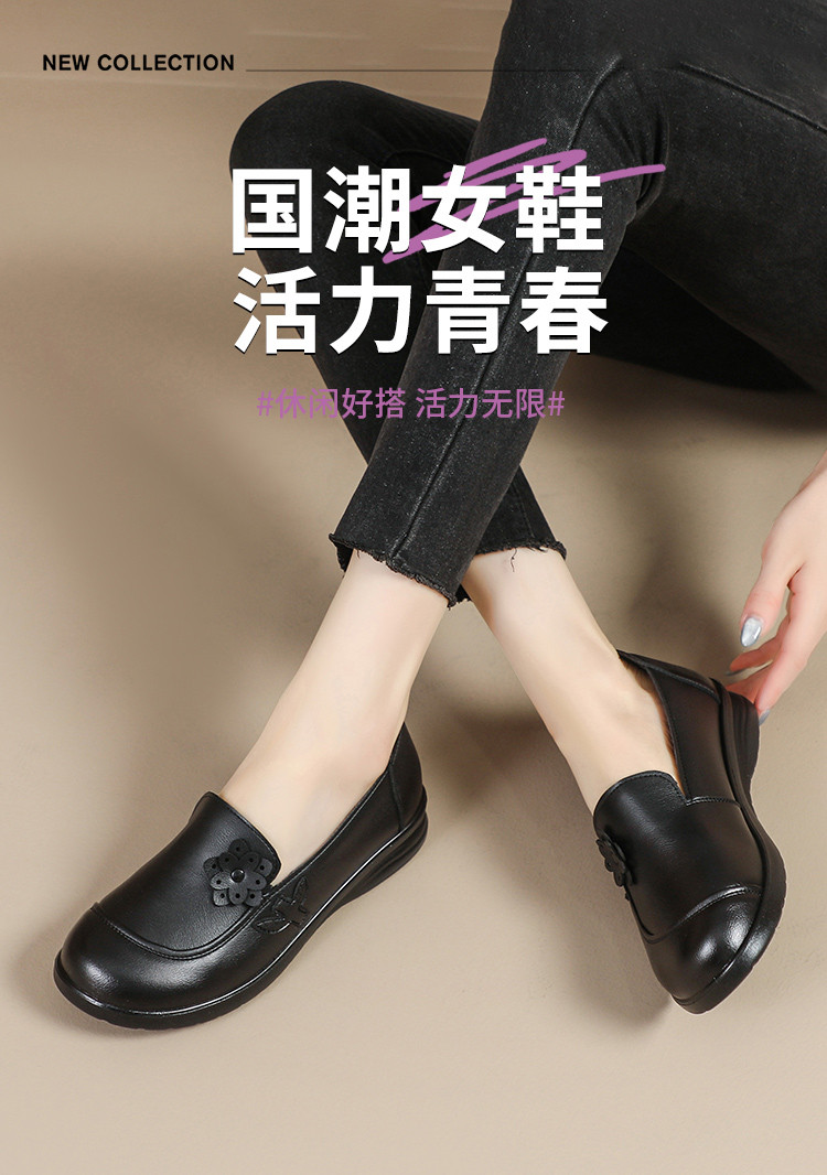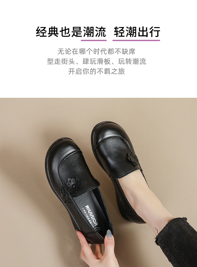 商品名称:【软底舒适】春夏休闲皮鞋女鞋妈妈鞋耐磨一脚蹬浅口女单鞋 615376