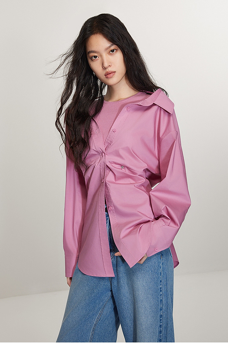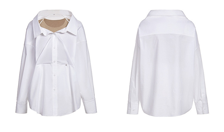 商品名称:春装 新疆长绒棉假两件衬衫女中长款宽松 485583