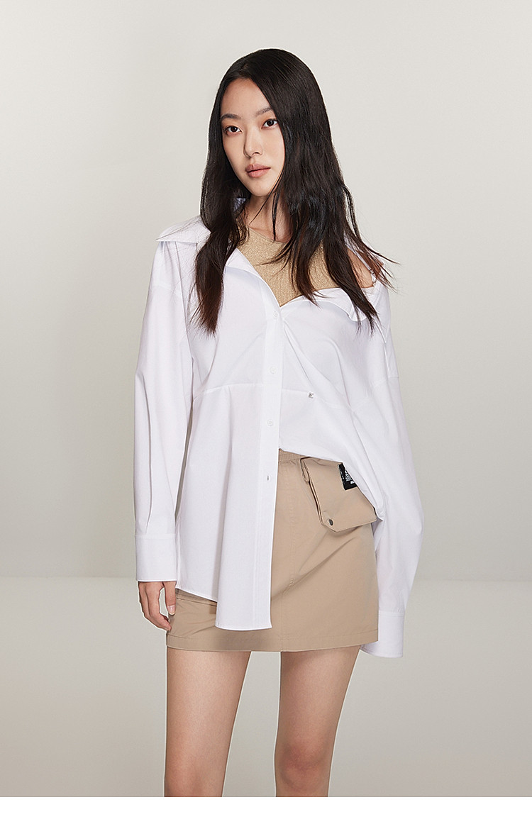 限定系列OCH.春装 纯棉廓形感中长款休闲上衣通勤衬衫女 997903