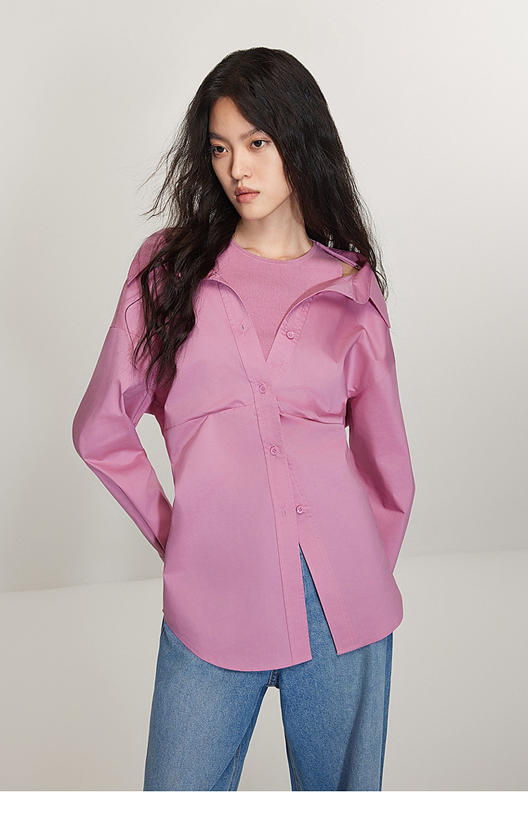 春装 新疆长绒棉假两件衬衫女中长款宽松 485583