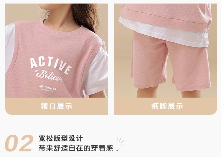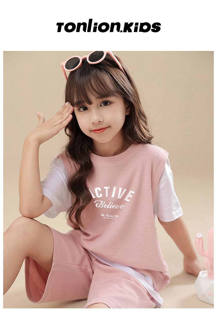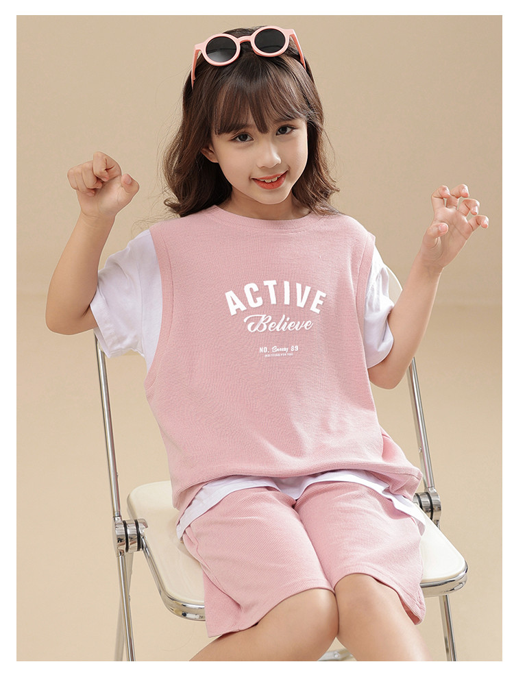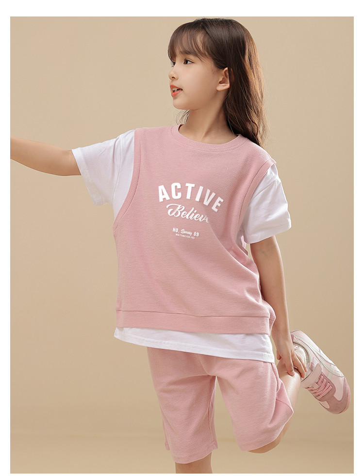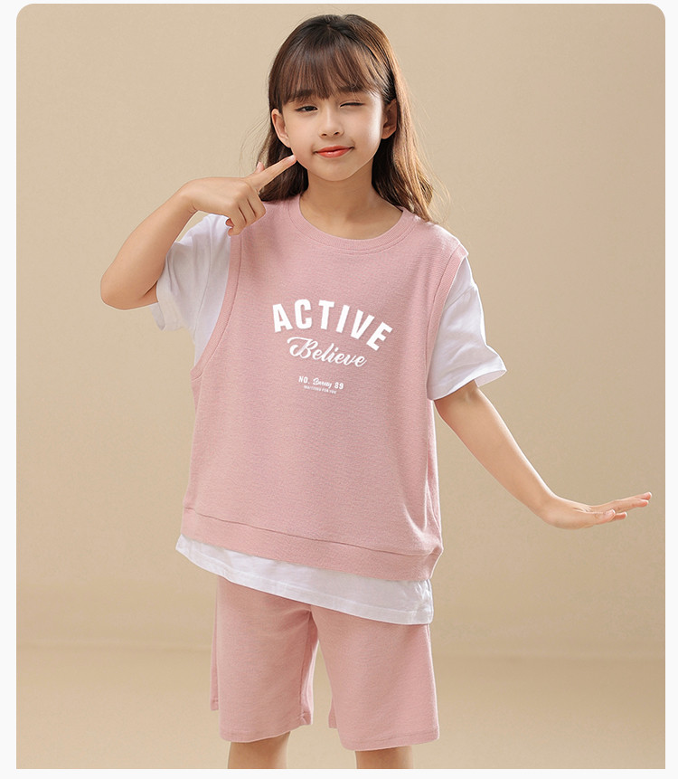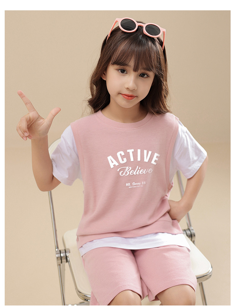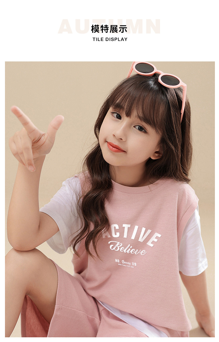 商品名称:【可爱时尚】女童套装春夏时尚运动短袖短裤套装中大童休闲套装 818191