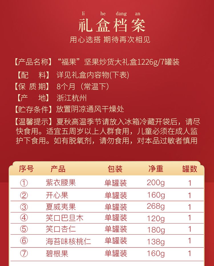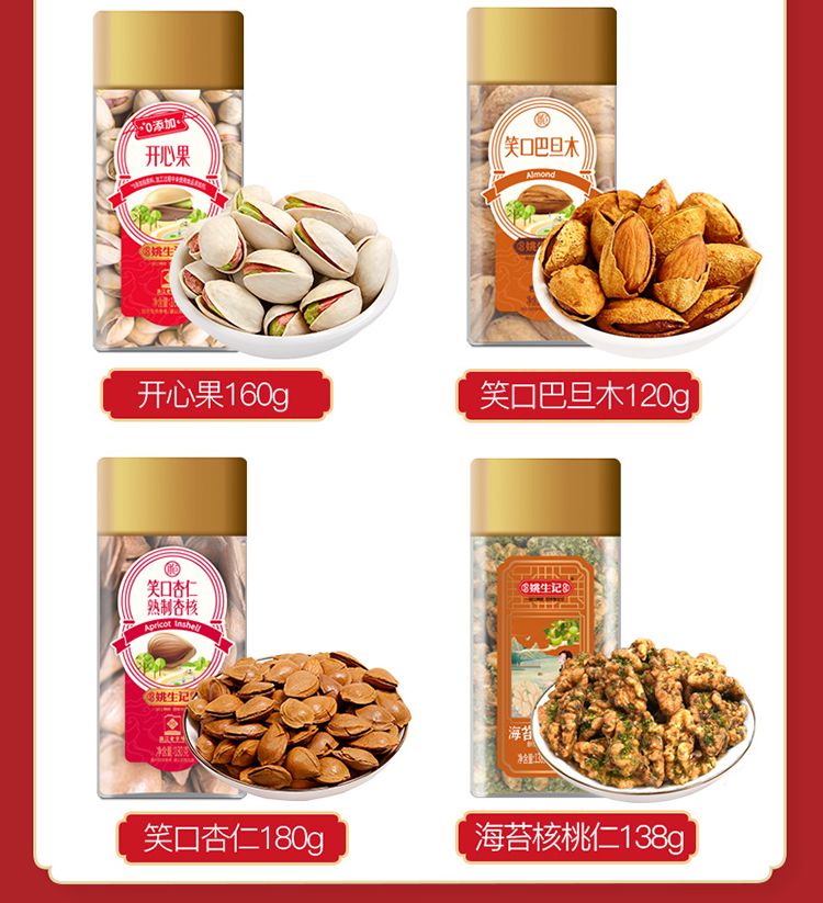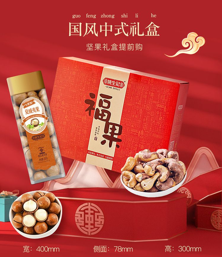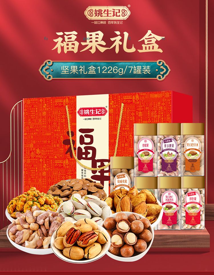 商品名称:姚生记 福果罐装礼盒 1226g 坚果干果送礼零食大礼包