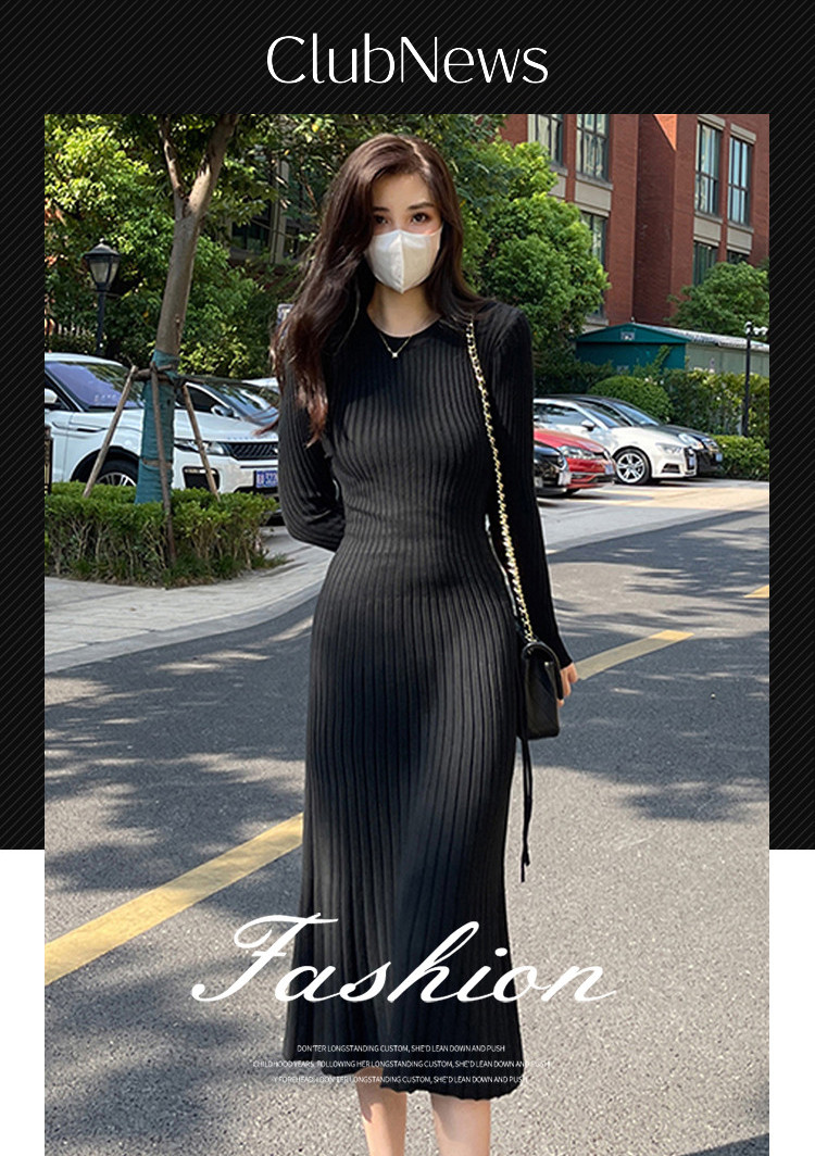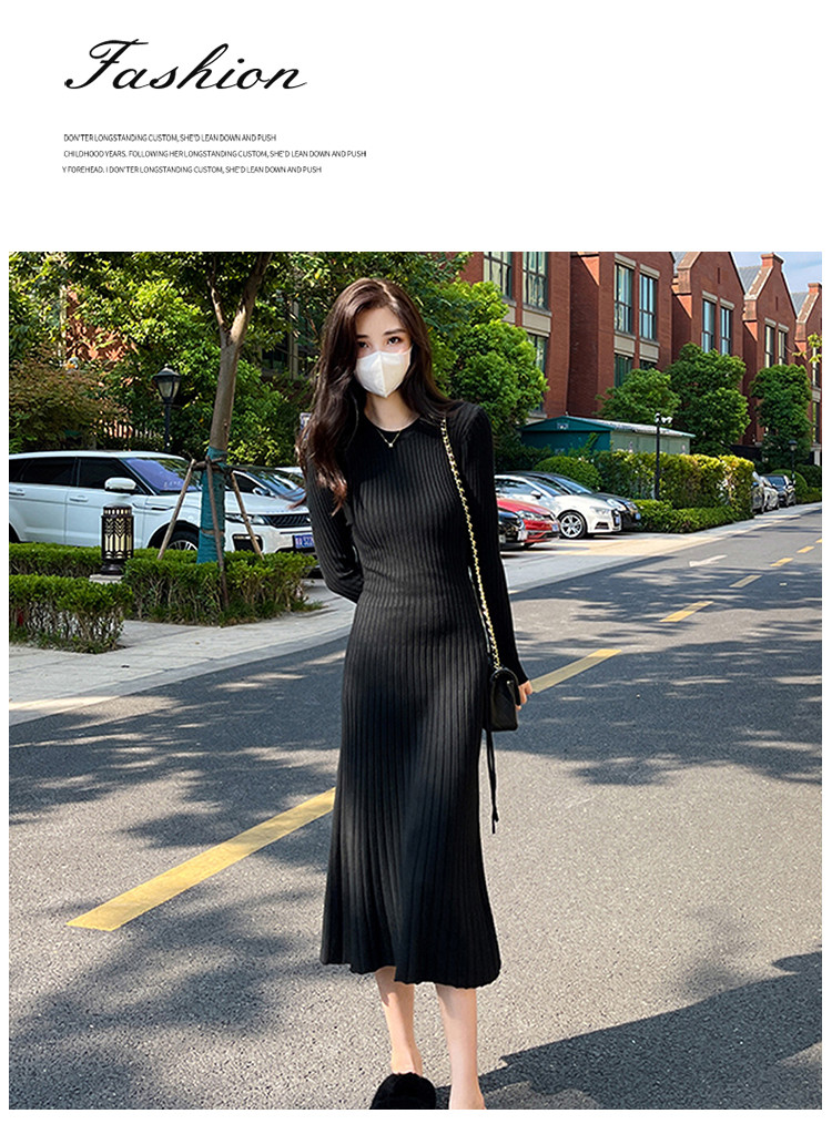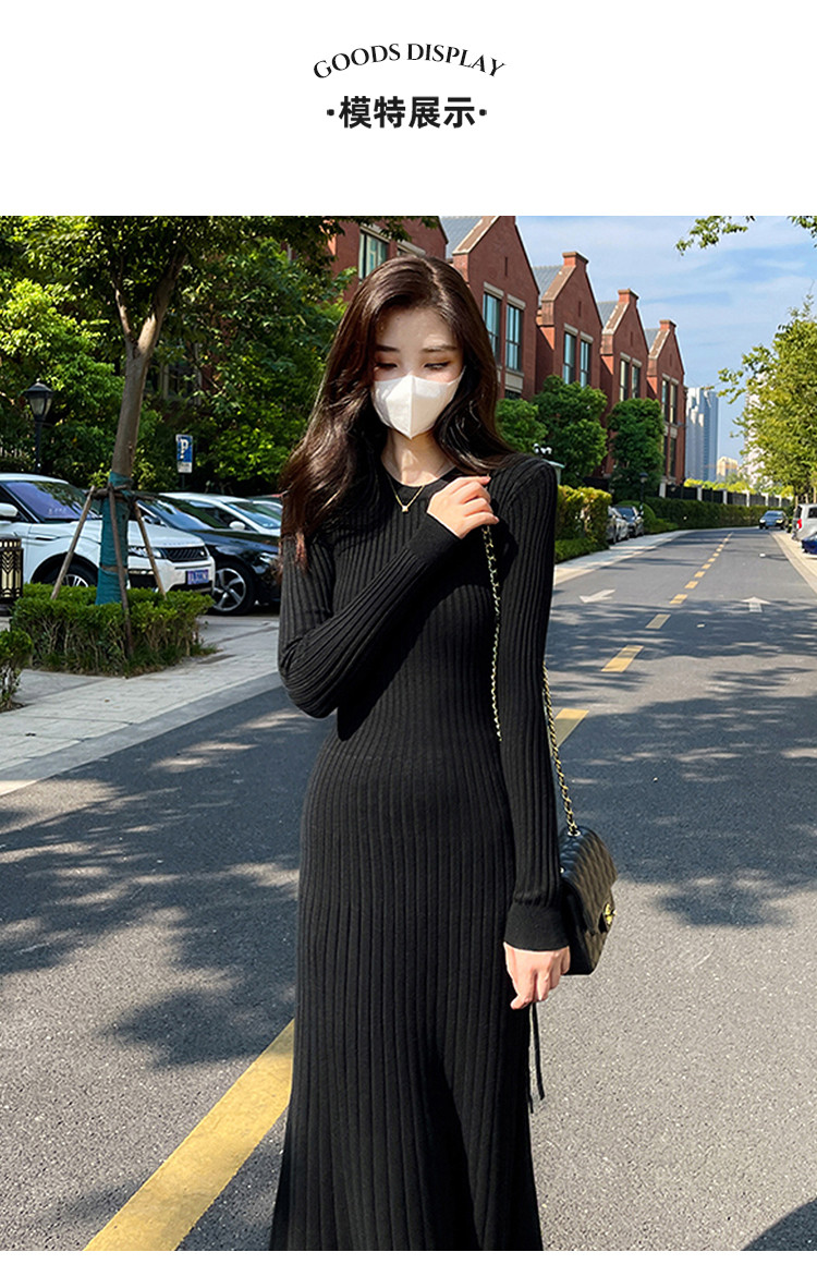 商品名称:潮流ins长袖针织连衣裙女气质打底长袖a字裙女 952067
