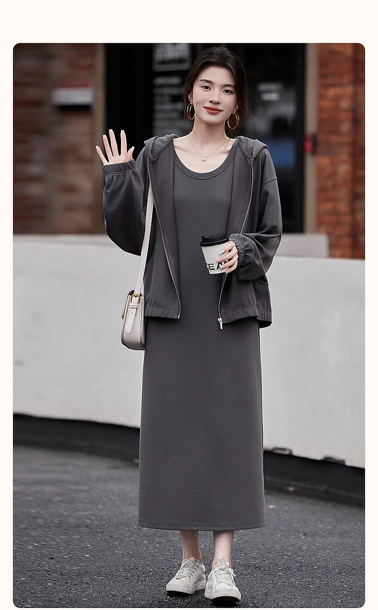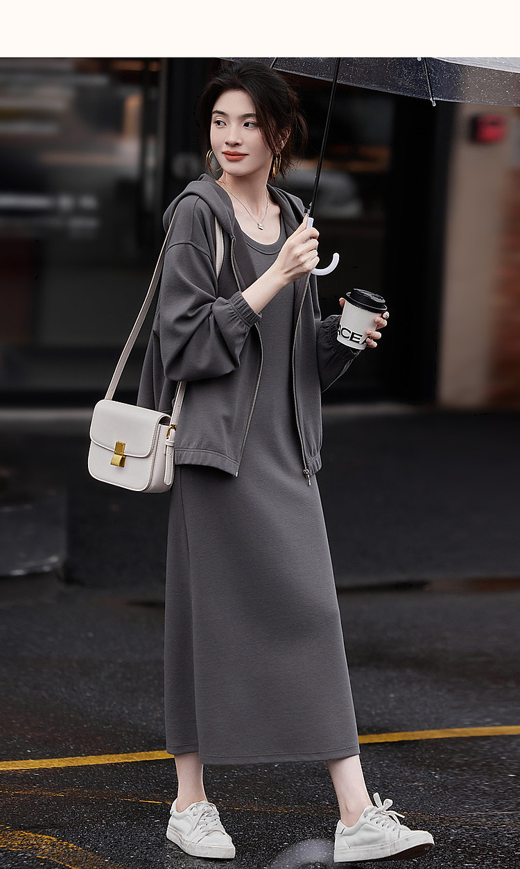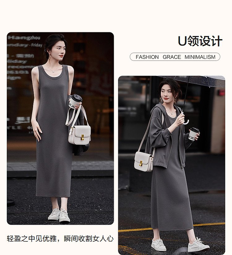 商品名称:【老钱慵懒风针织套装】秋落肩松弛感上衣U领背心连衣裙两件套女 521153