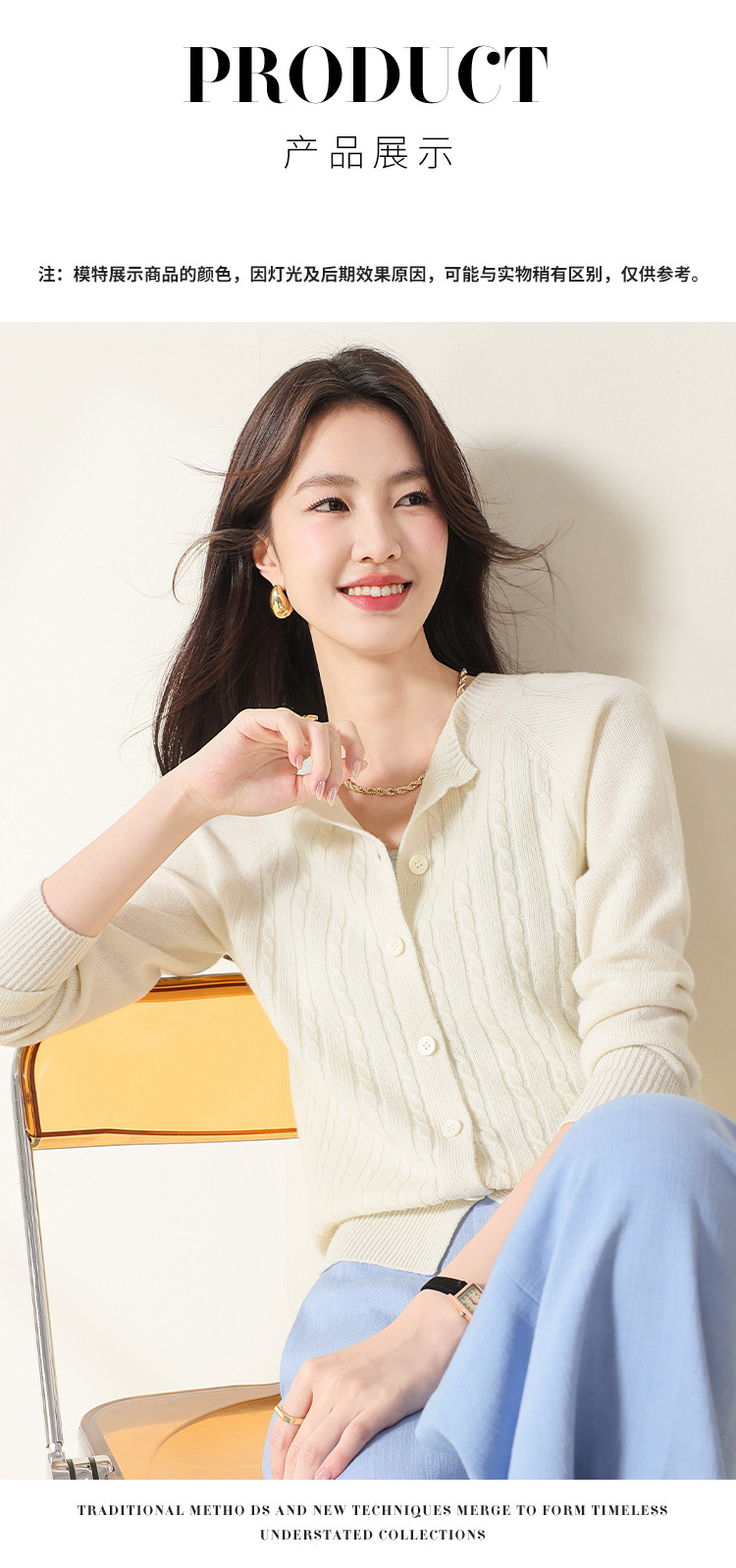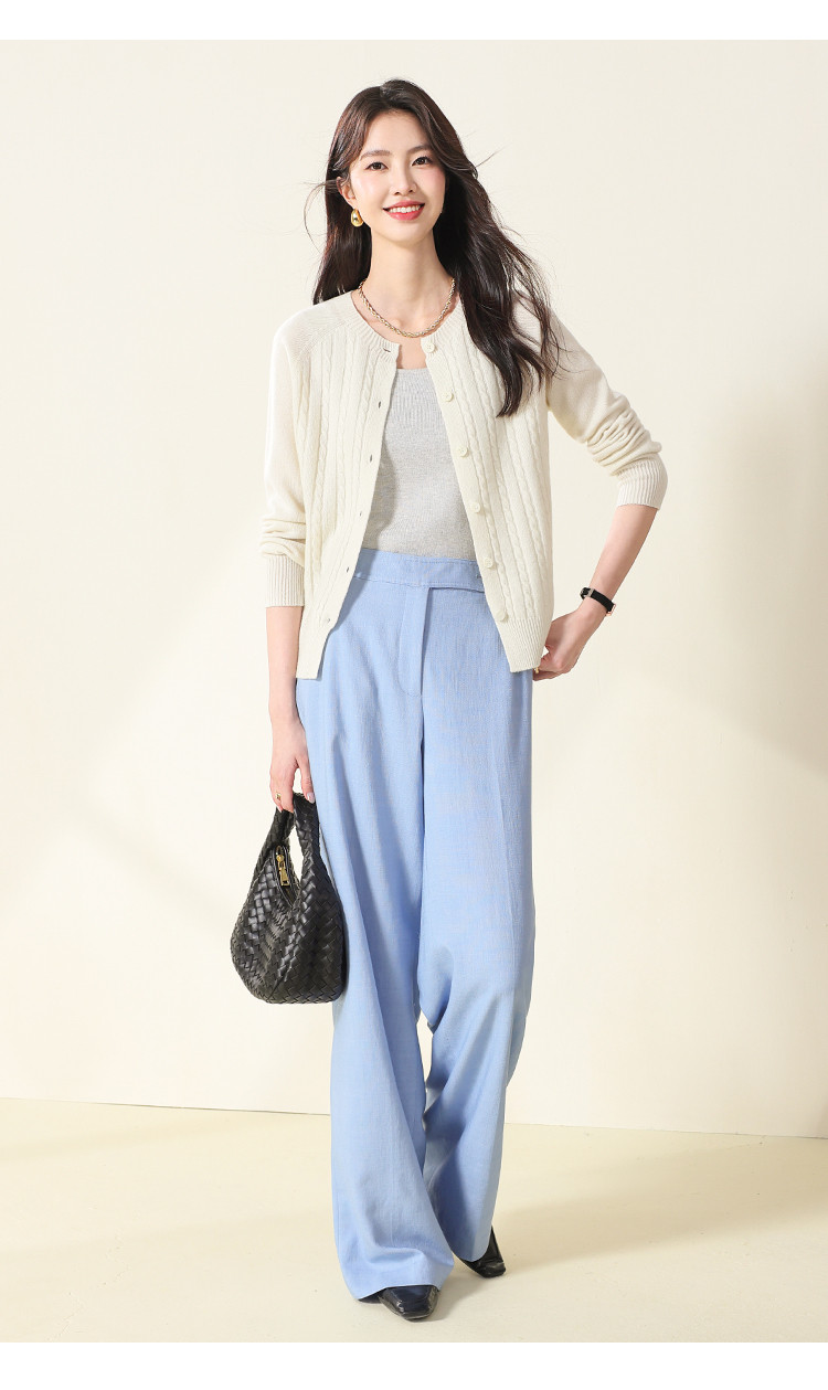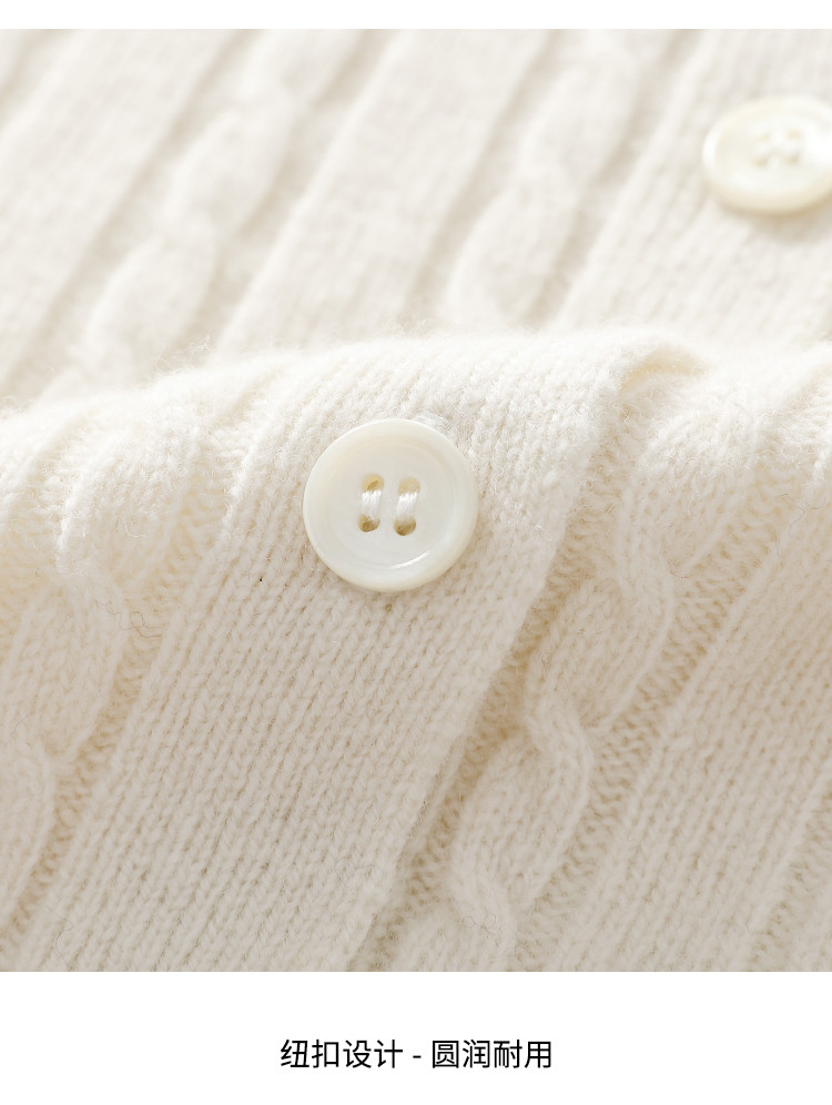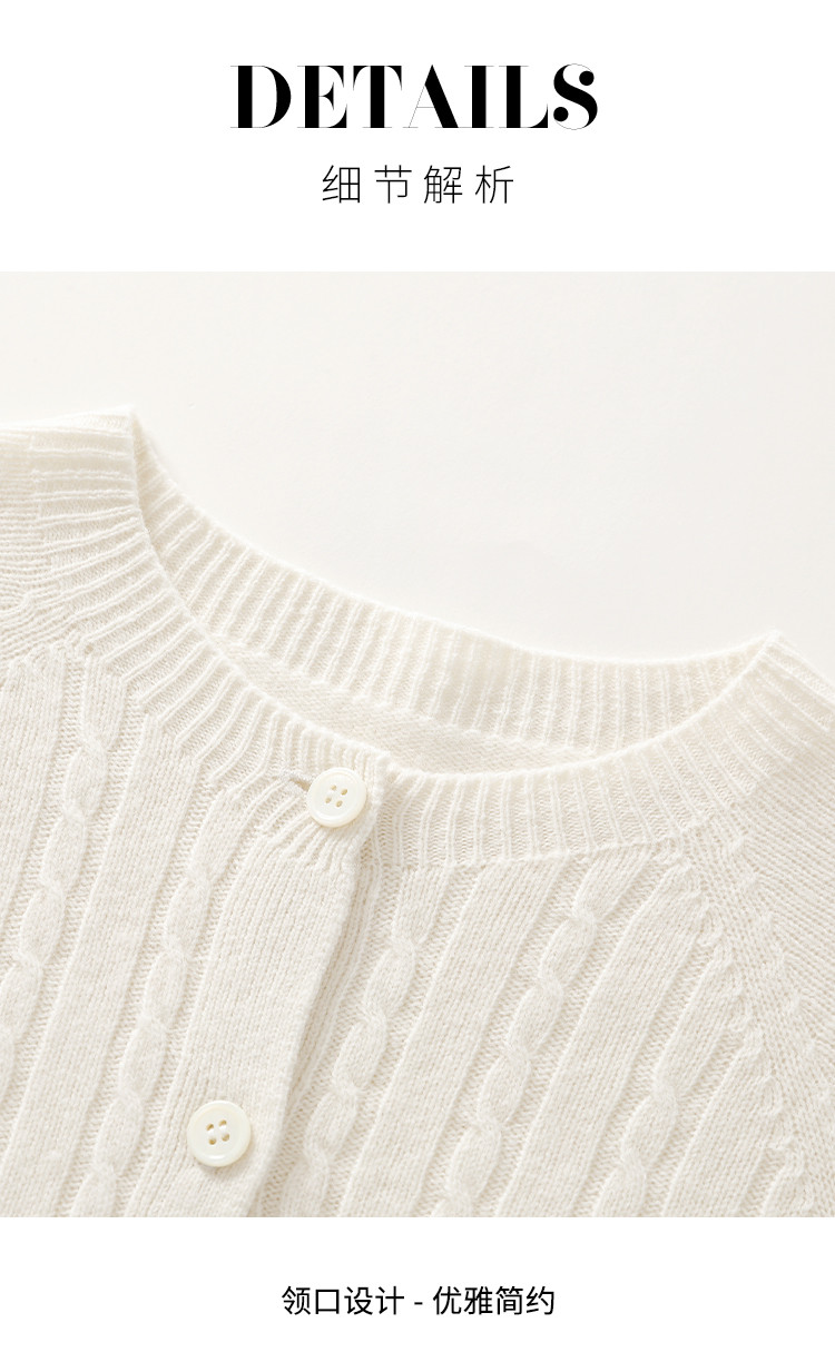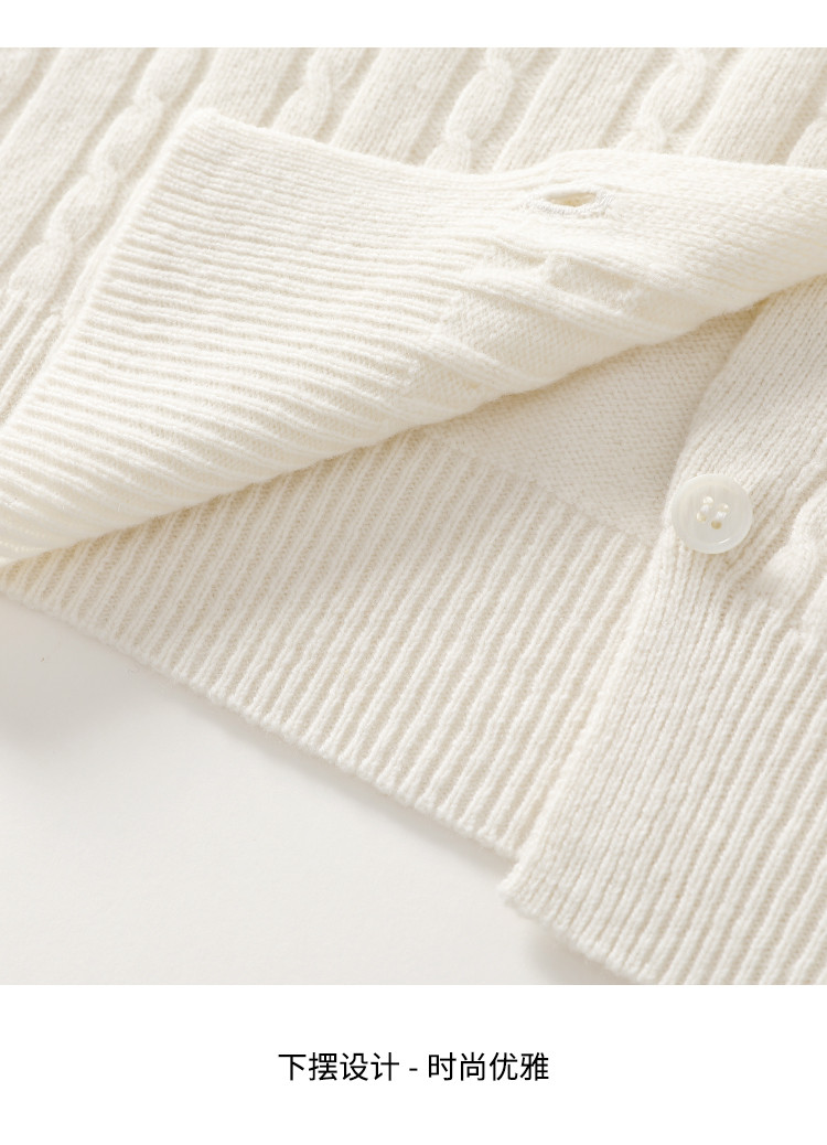 商品名称:【无缝】100%羊毛圆领纯色绞花针织衫女开衫毛衣外套羊毛衫春 015059