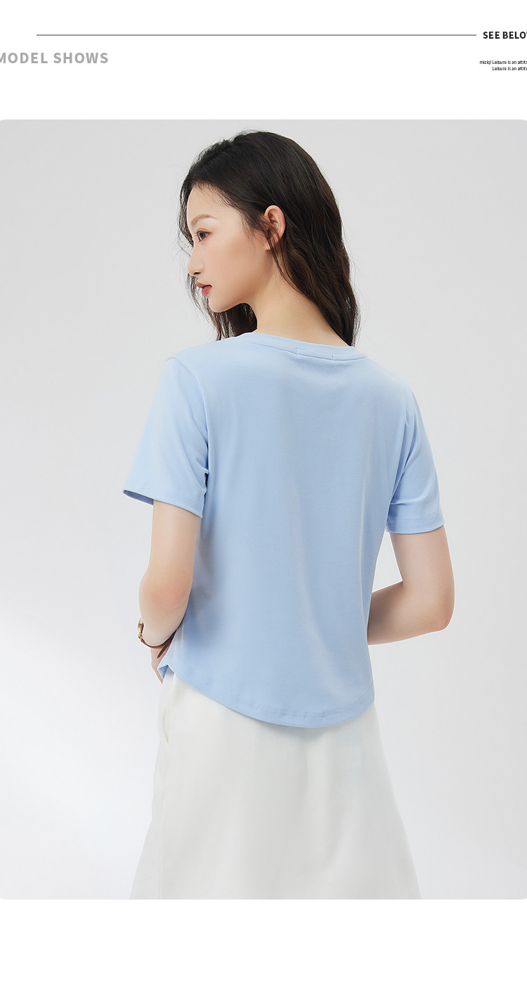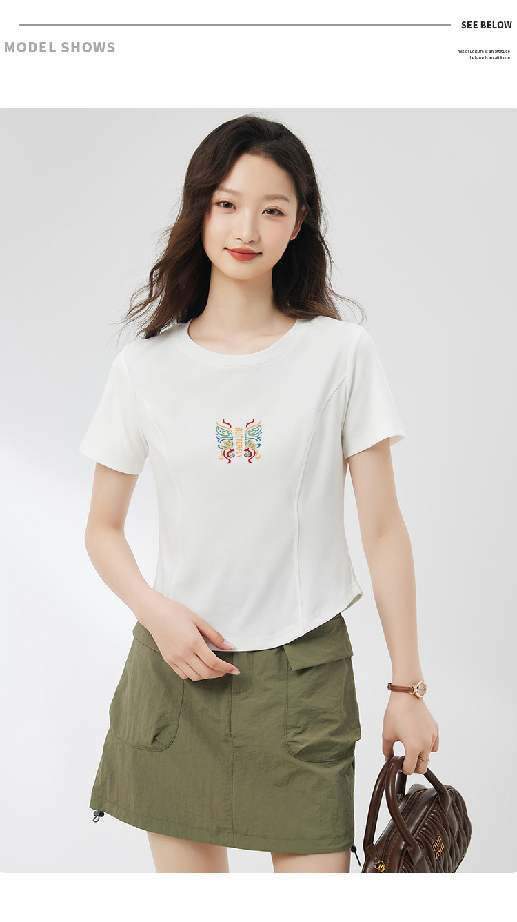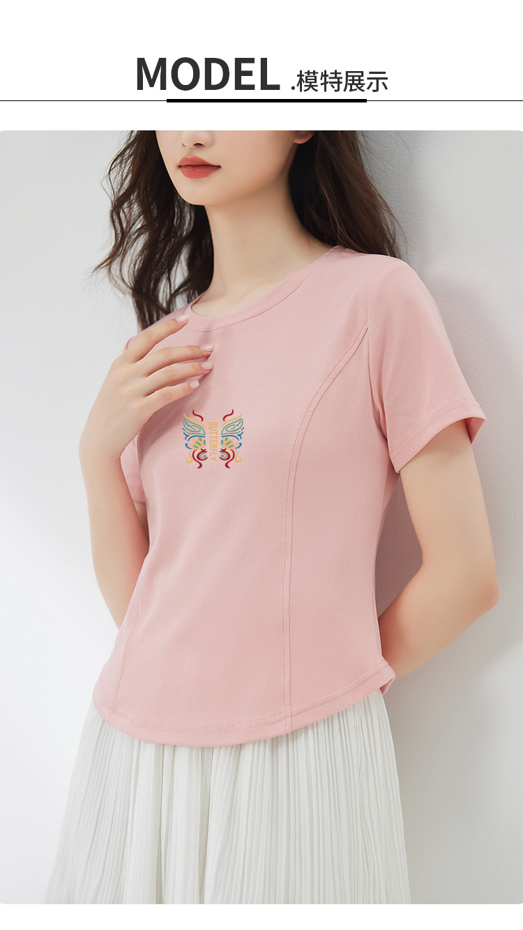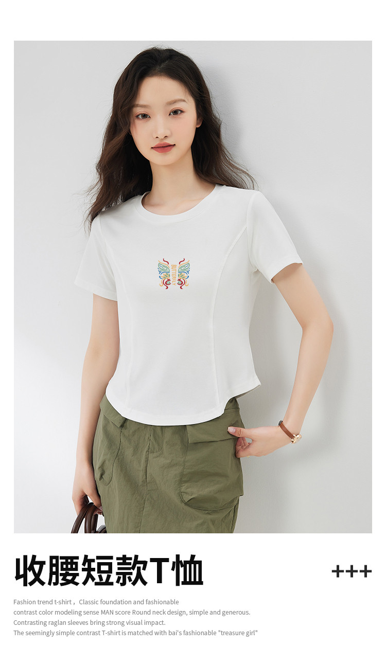 商品名称:米子旗夏季女圆领国风印花T恤短款弧形下摆显瘦短袖上衣 755418