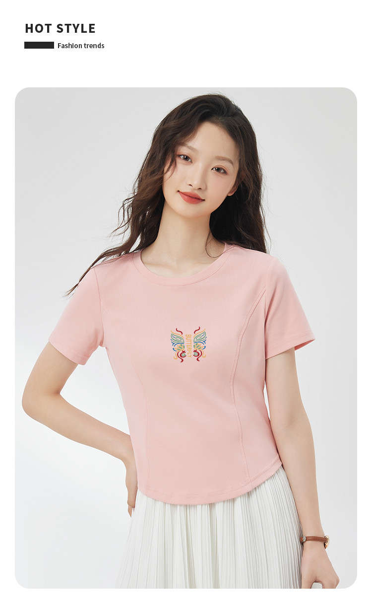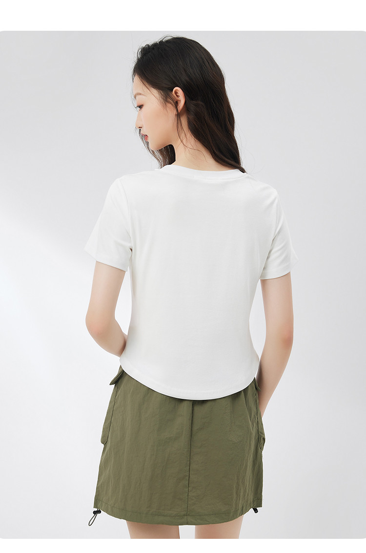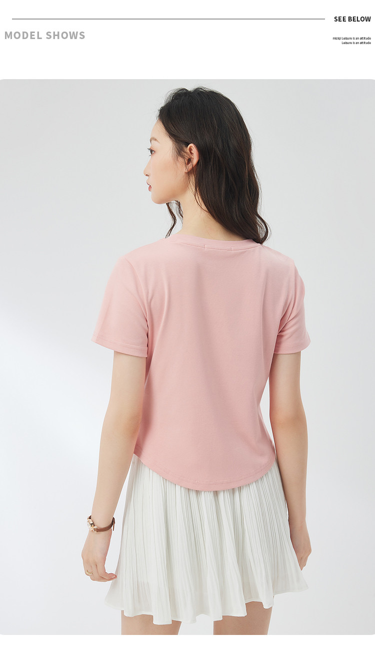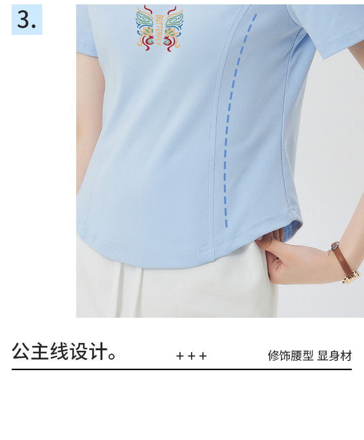 商品名称:米子旗夏季女圆领国风印花T恤短款弧形下摆显瘦短袖上衣 755418