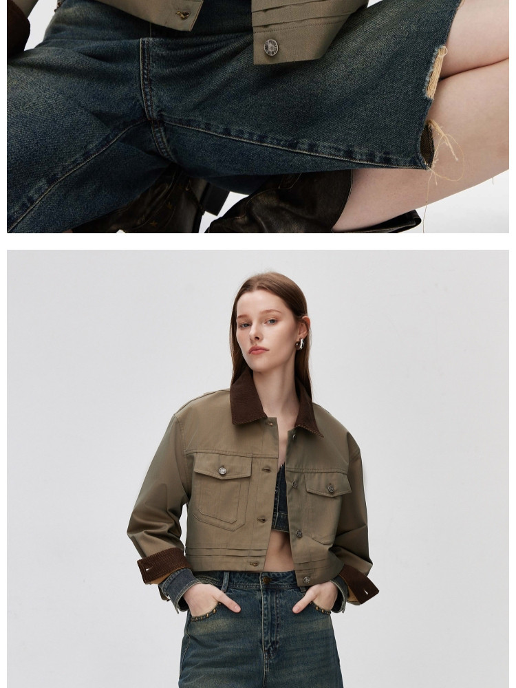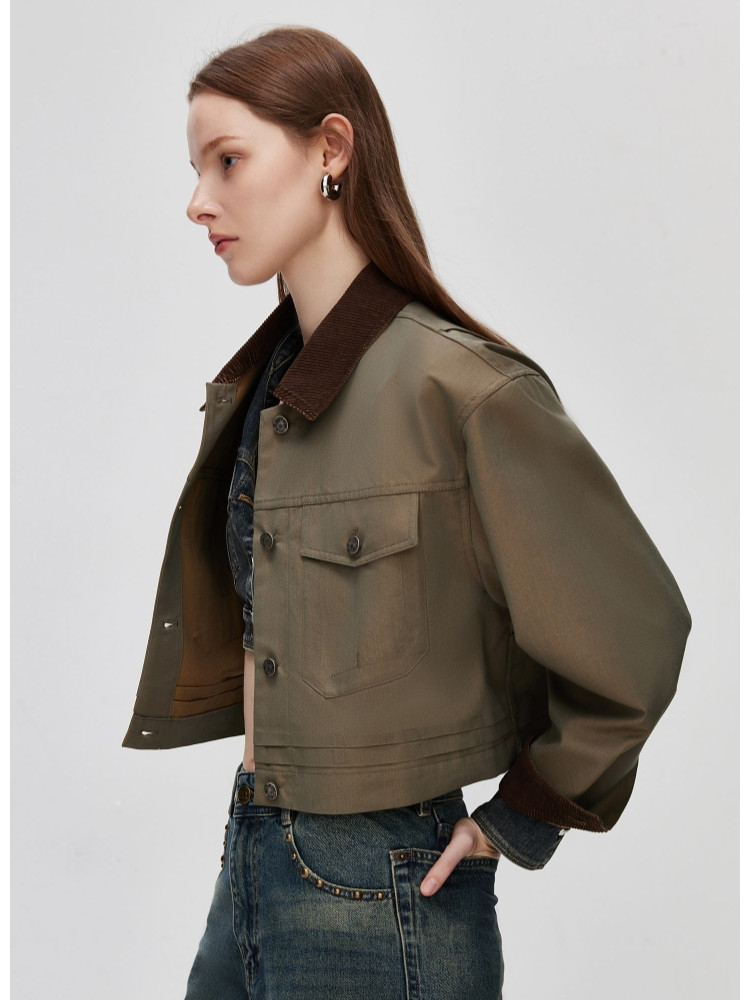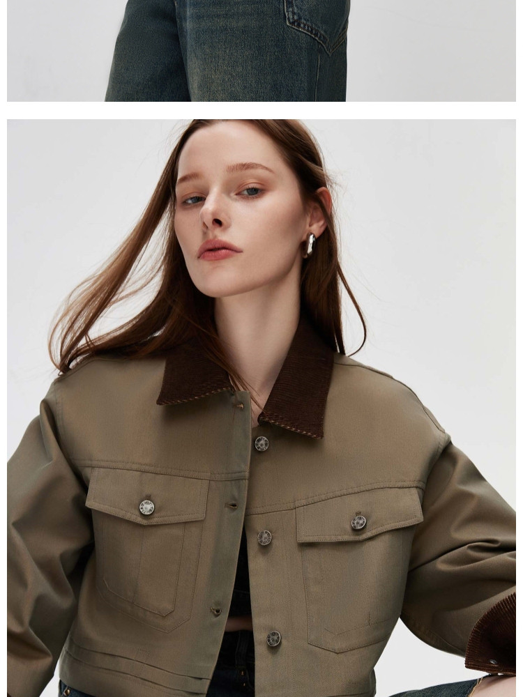 商品名称:【复古百搭】春季口袋翻领宽松短款外套女 201882
