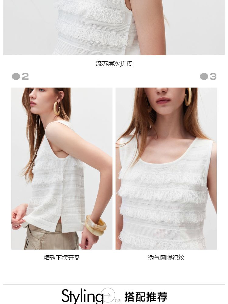 商品名称:【流苏拼接】春季清凉时尚无袖圆领针织衫女 675738
