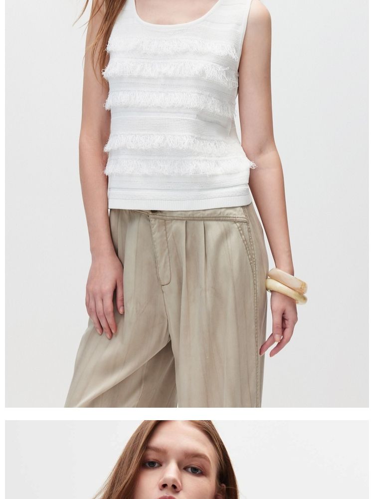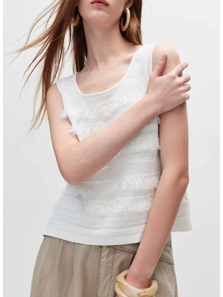 【流苏拼接】春季清凉时尚无袖圆领针织衫女 675738
