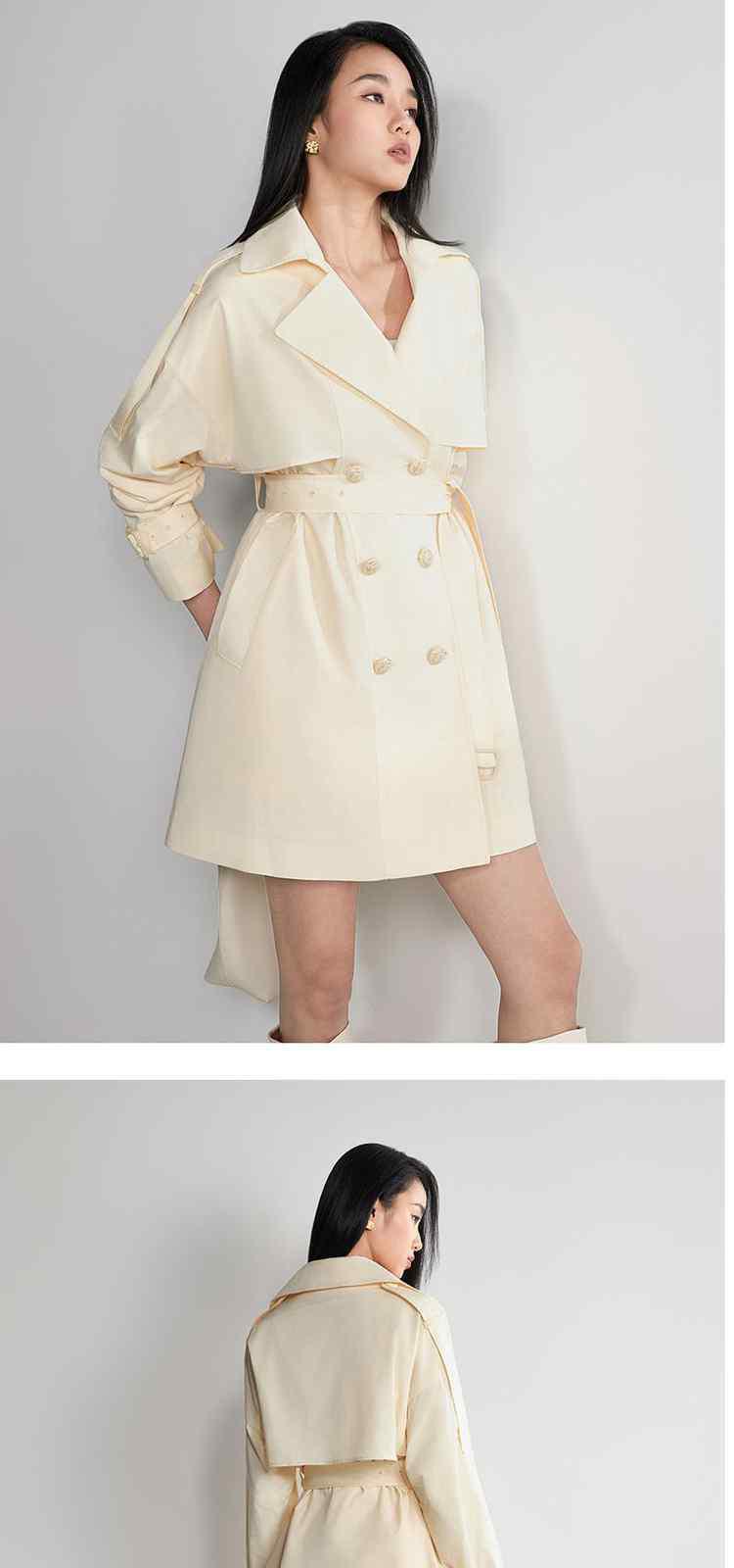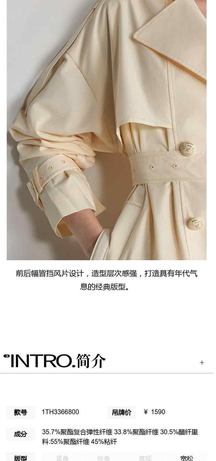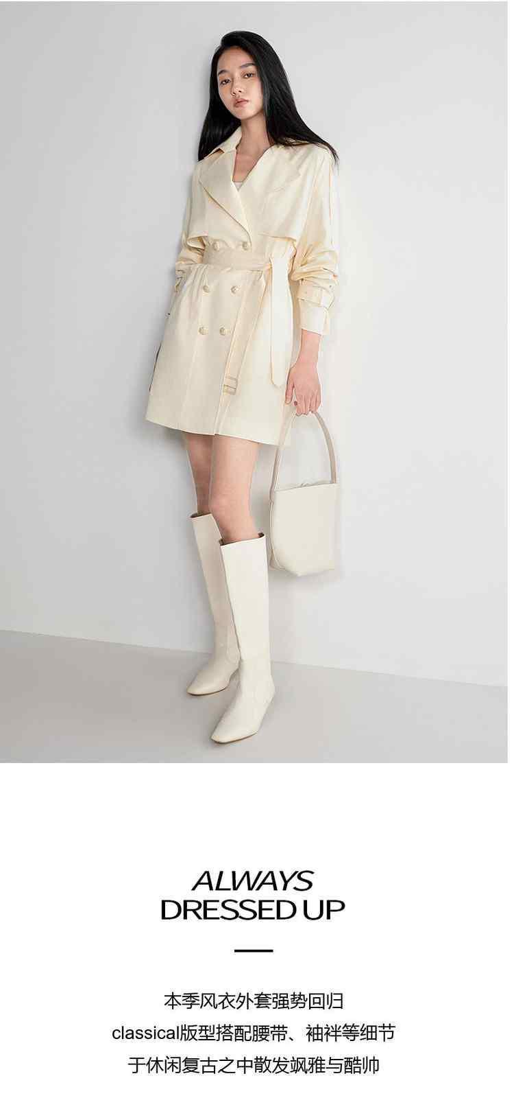 商品名称:黑标系列春装 配腰带英伦风醋酸中长风衣外套女 343311