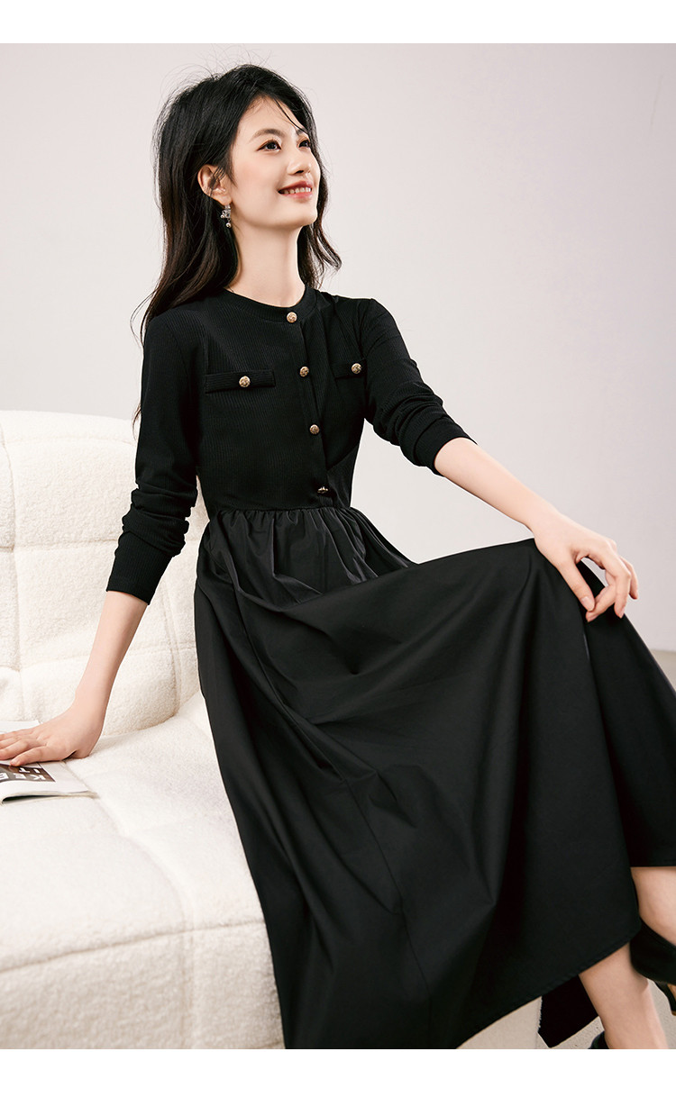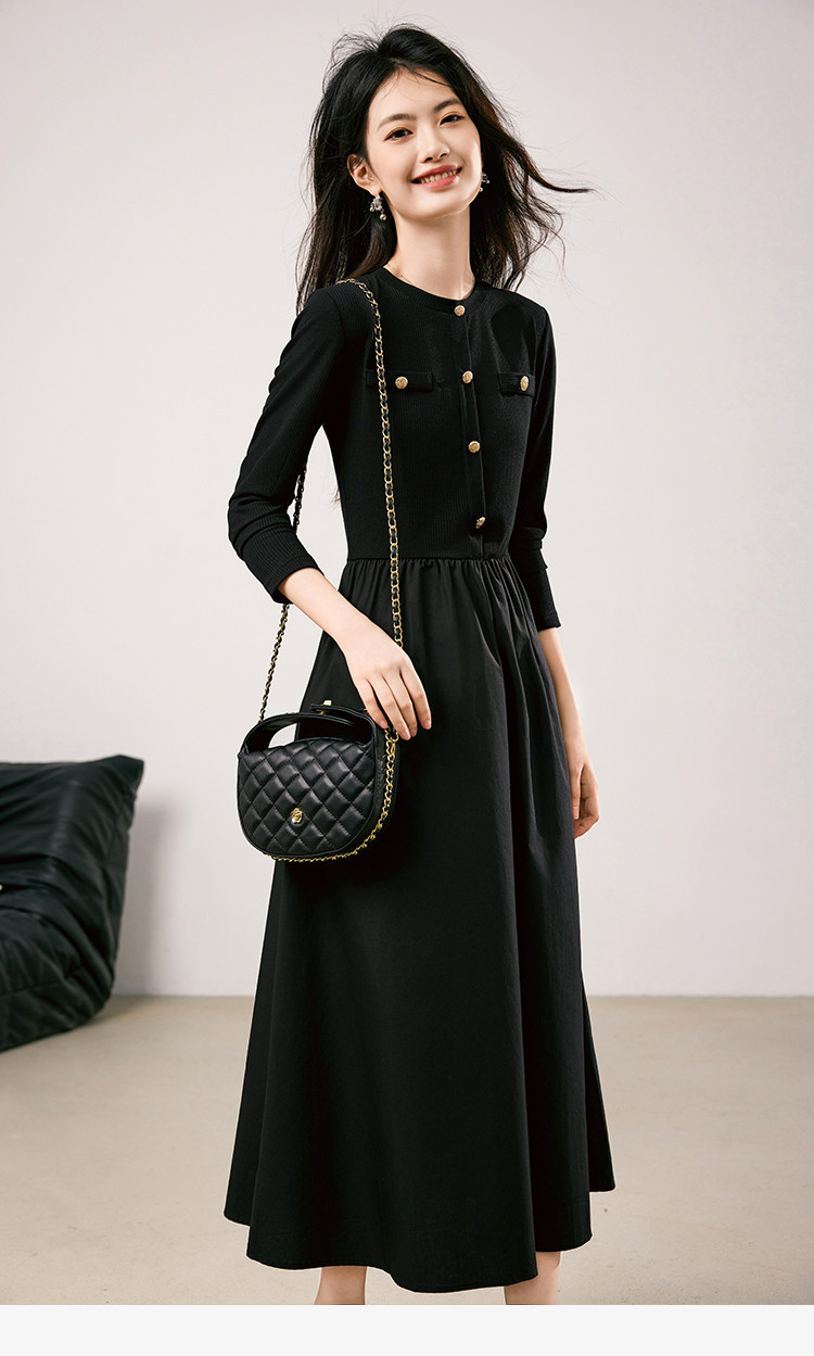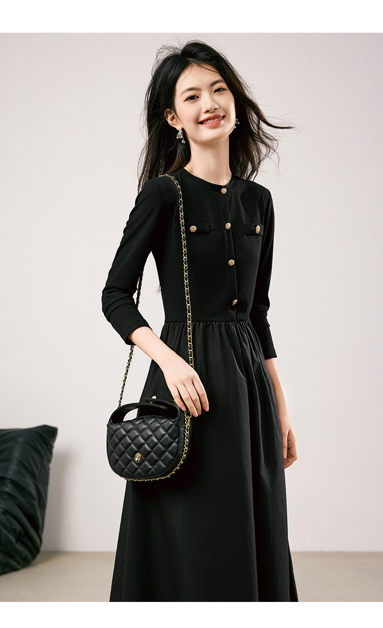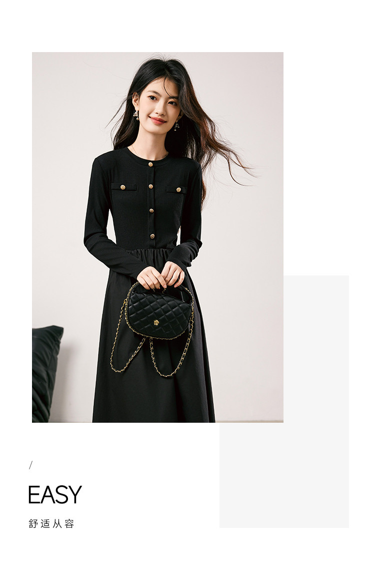 商品名称:法式针织连衣裙女2025春季新款小香风收腰显瘦时尚长袖打底裙 117208