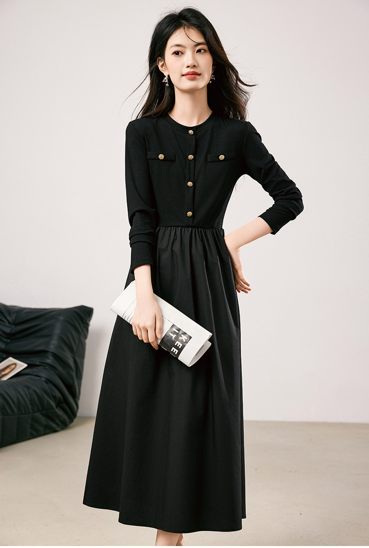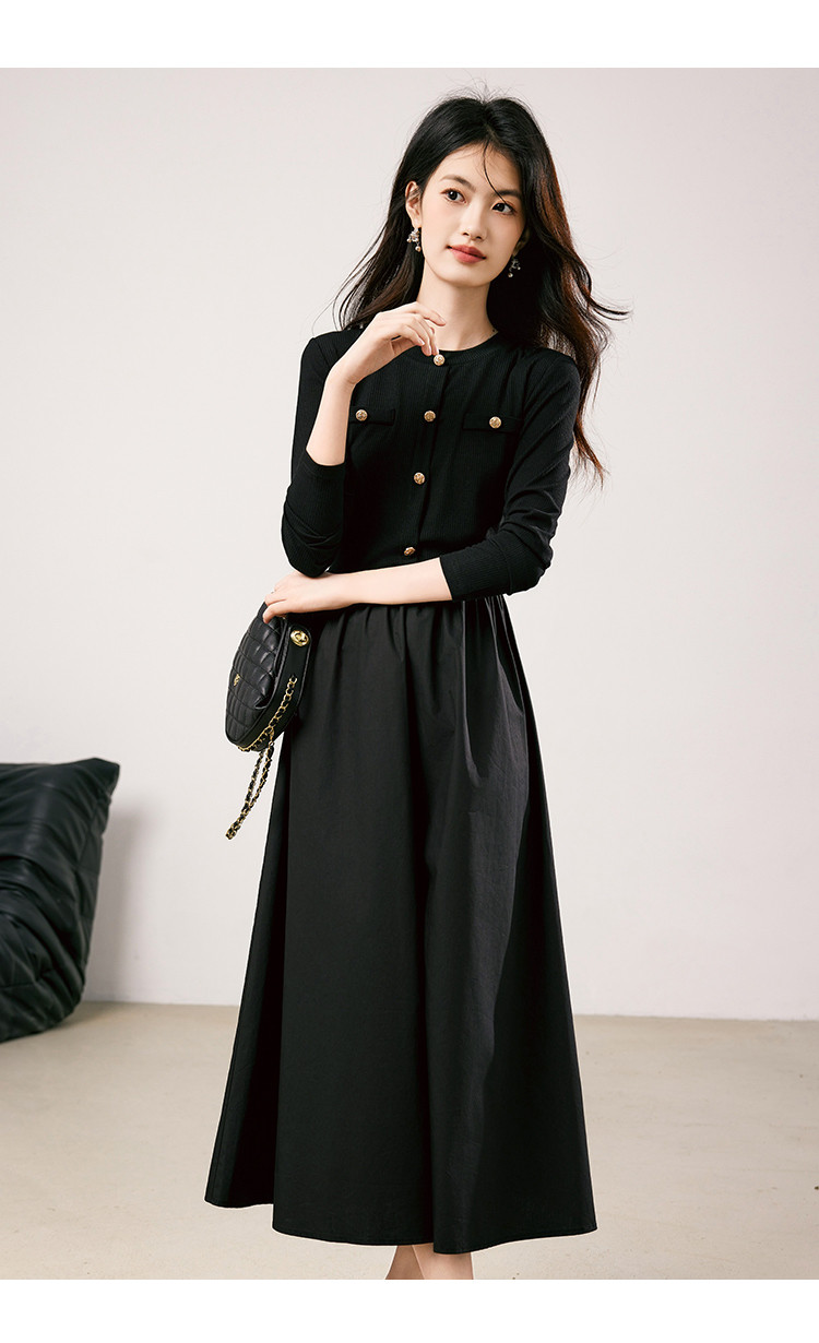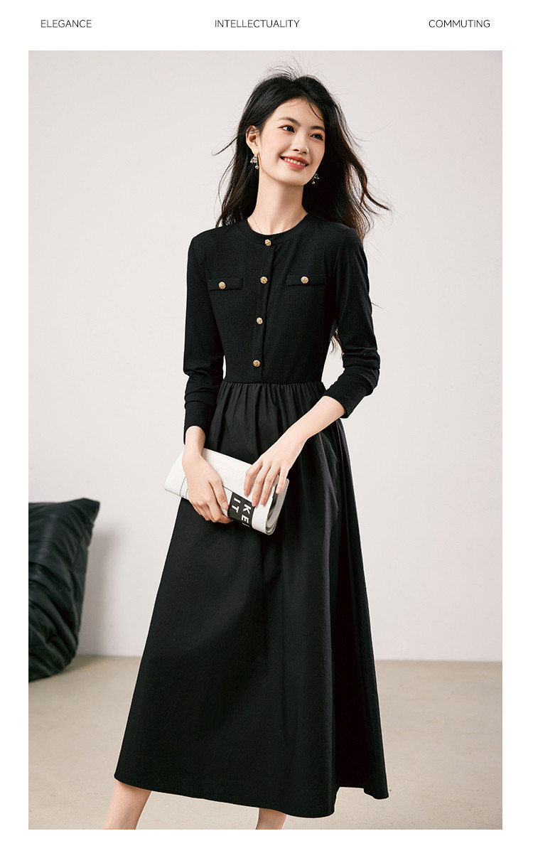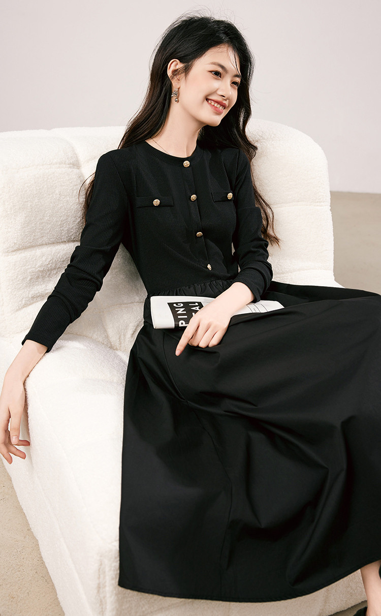 商品名称:法式针织连衣裙女2025春季新款小香风收腰显瘦时尚长袖打底裙 117208