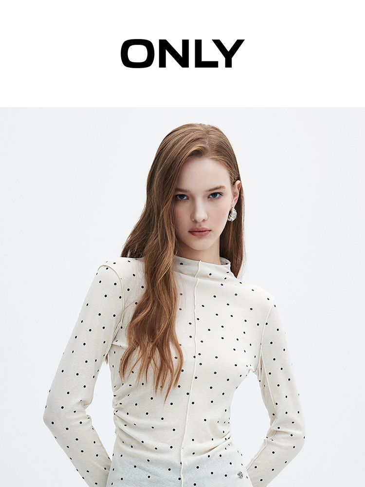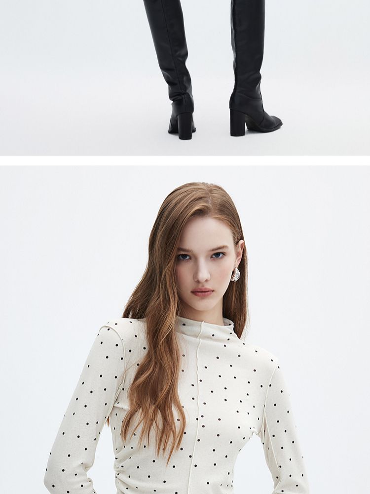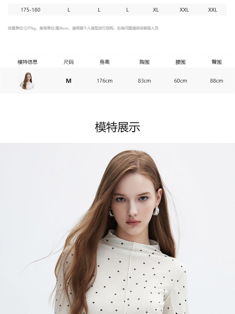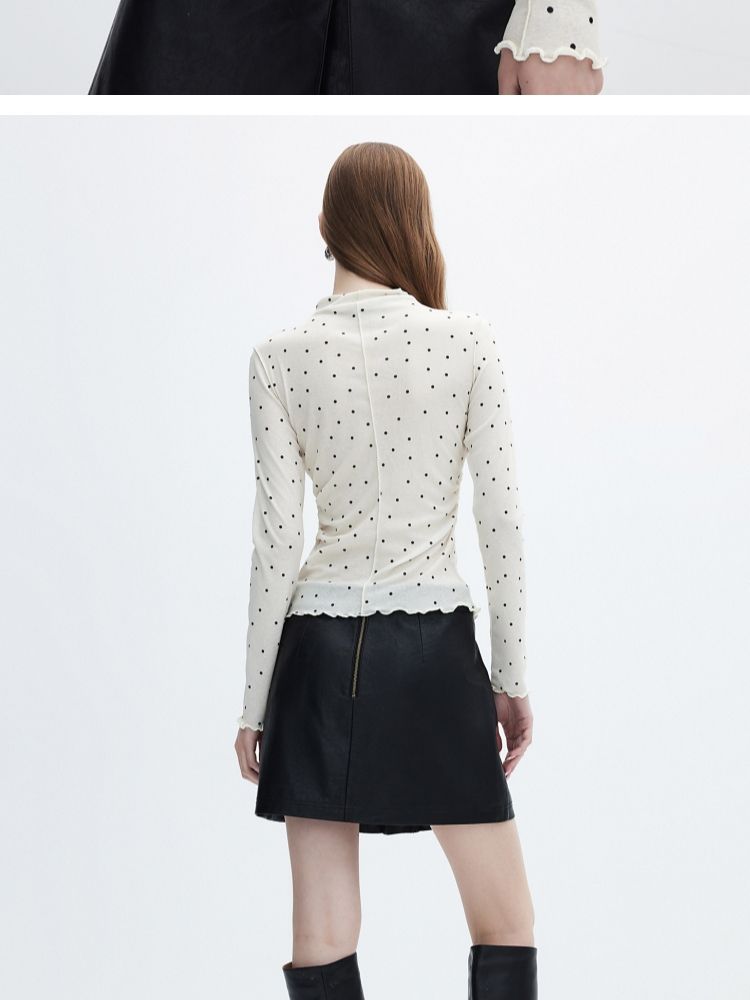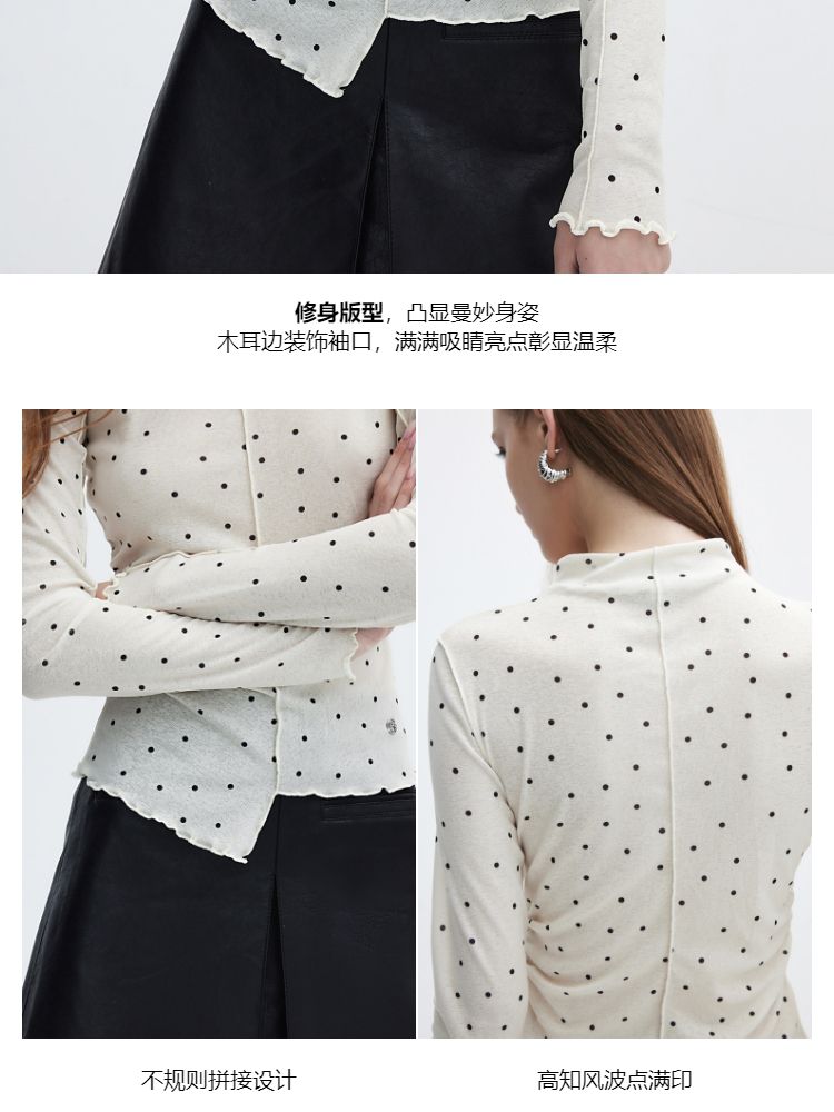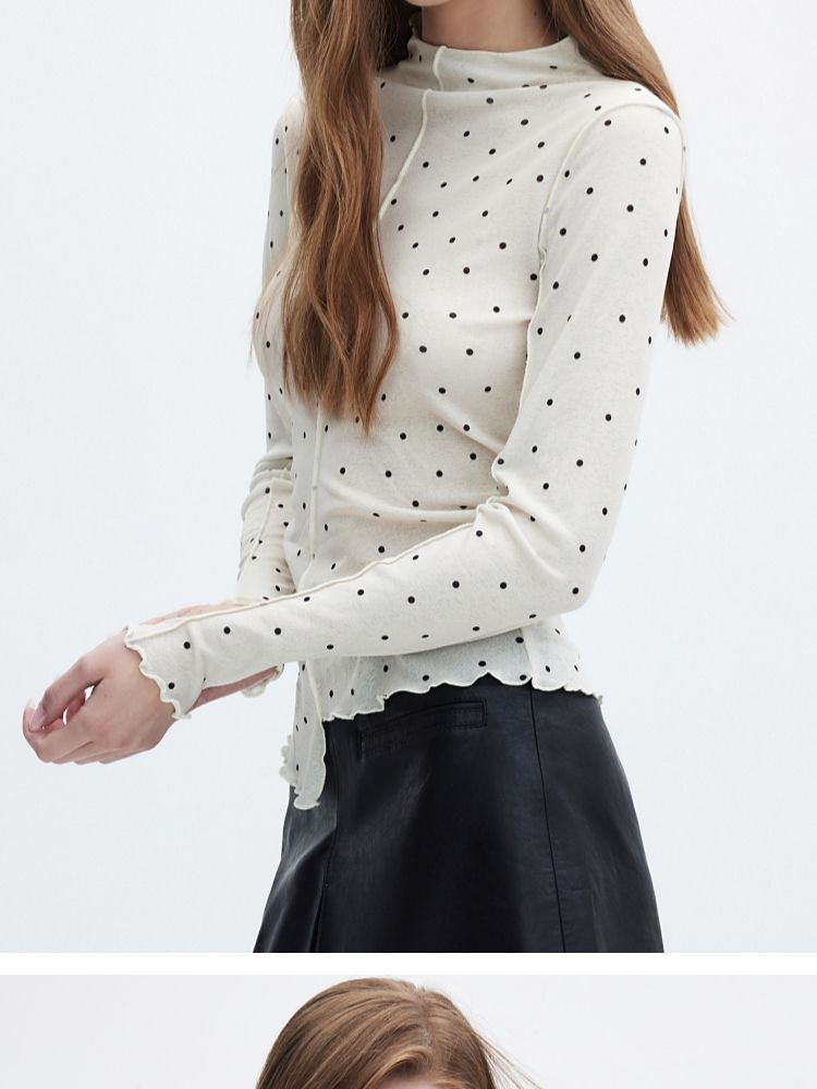 商品名称:【甜美波点】夏季甜美风修身波点半高领长袖T恤女 543834