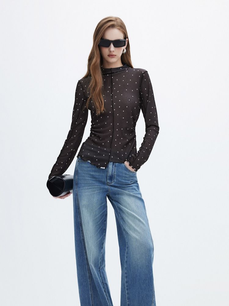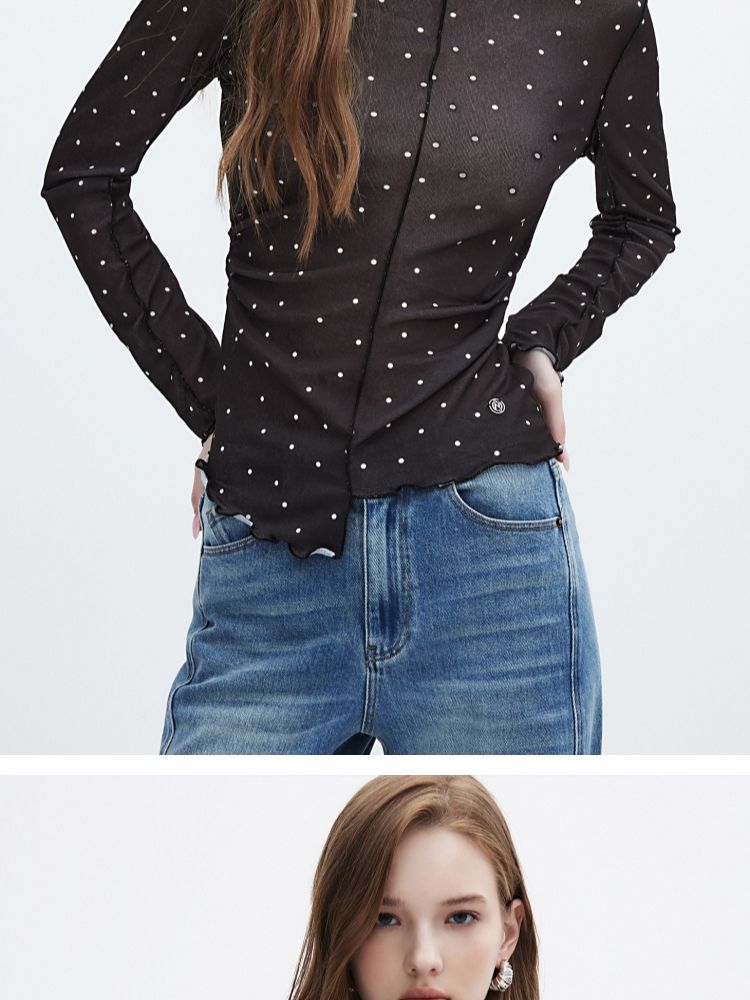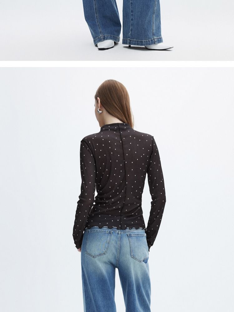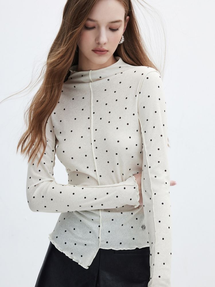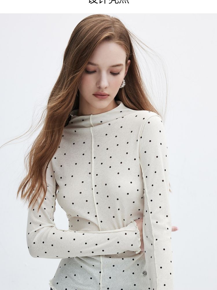【甜美波点】夏季甜美风修身波点半高领长袖T恤女 543834
