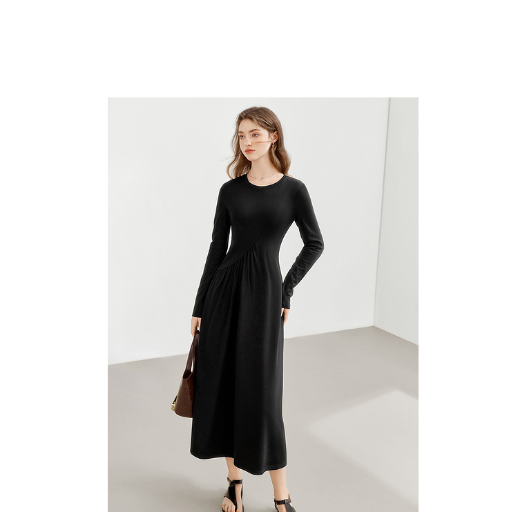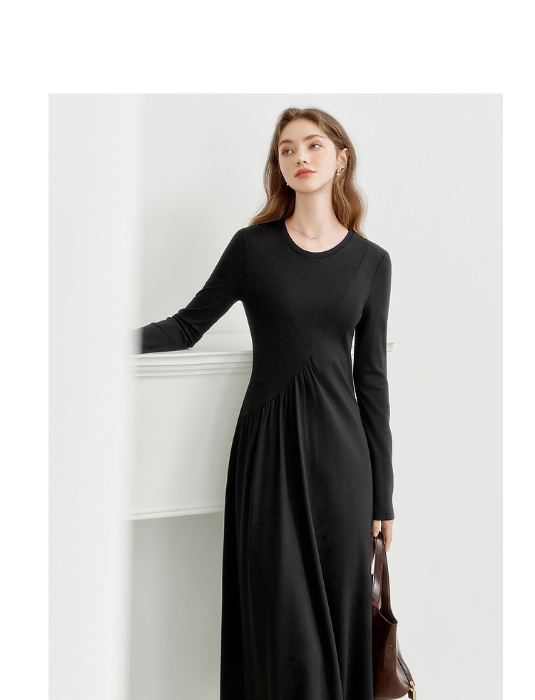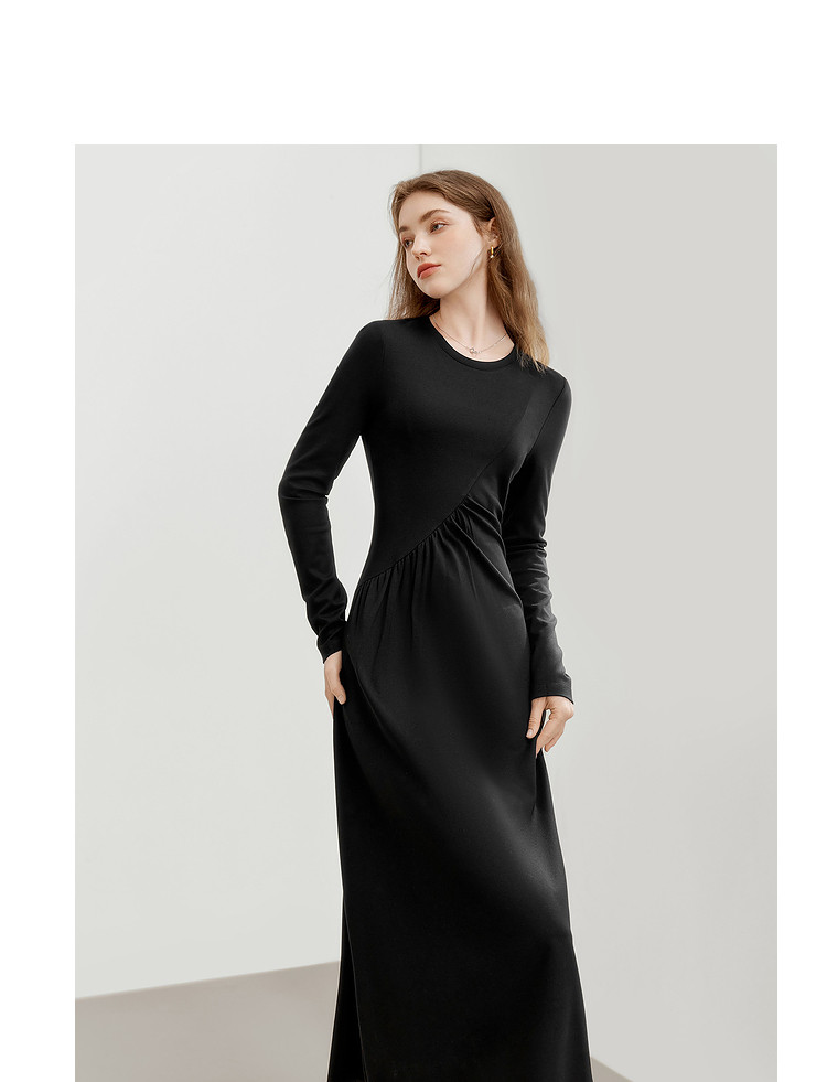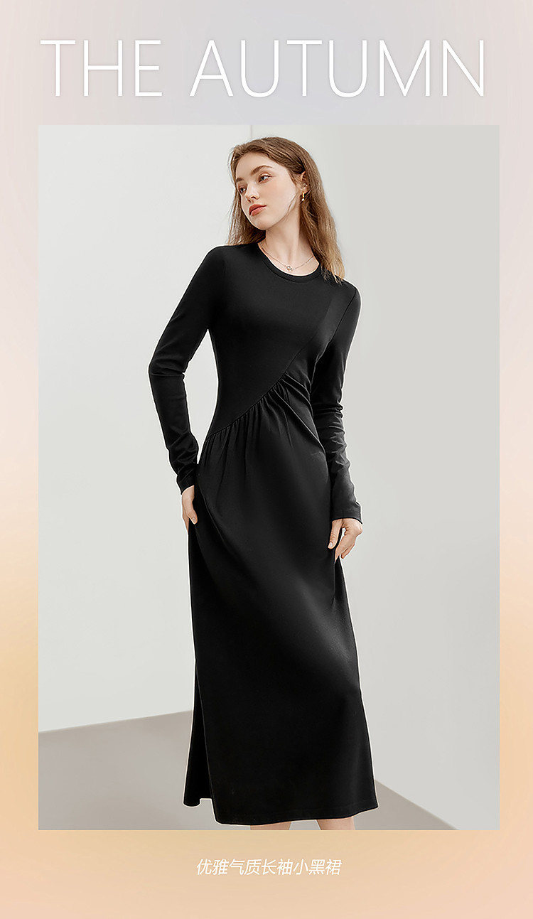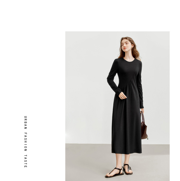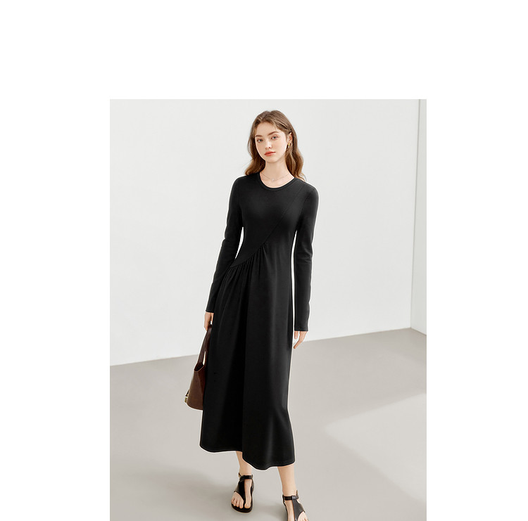 商品名称:【2024秋装】设计感显瘦长袖连衣裙气质斜边褶皱修身裙子 842516