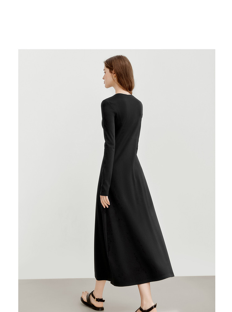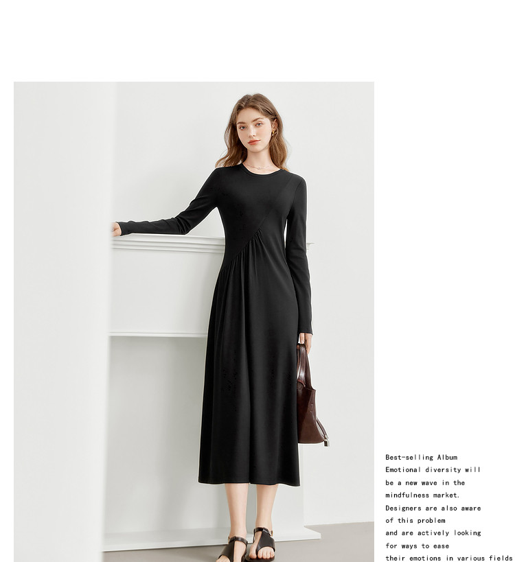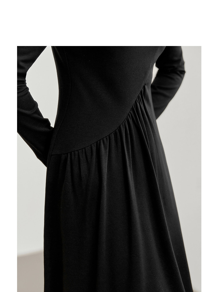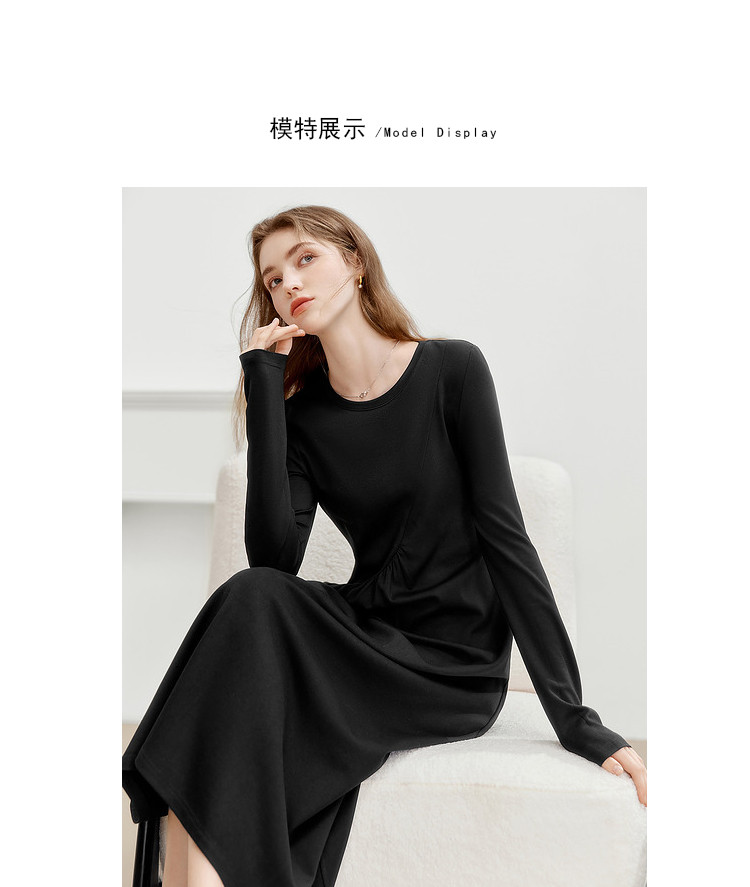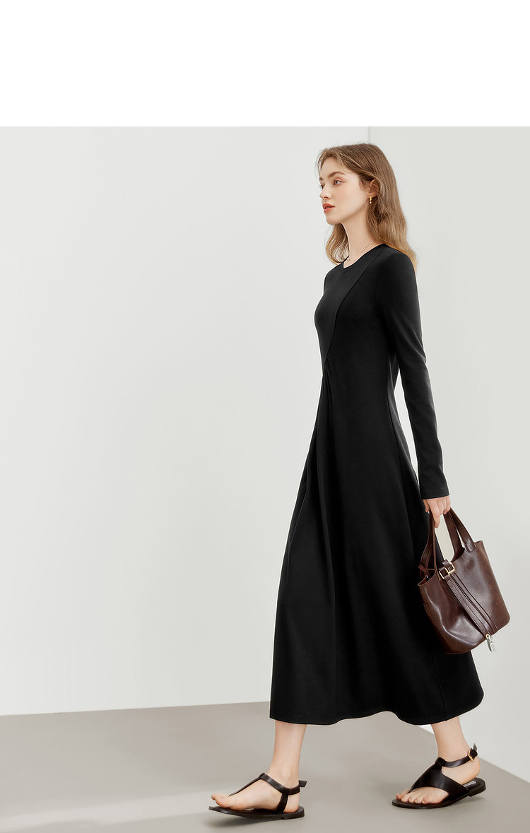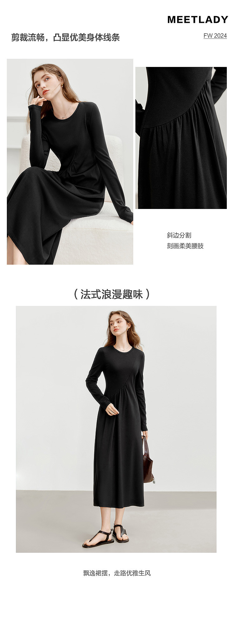 商品名称:【2024秋装】设计感显瘦长袖连衣裙气质斜边褶皱修身裙子 842516