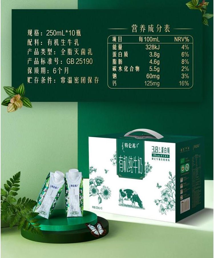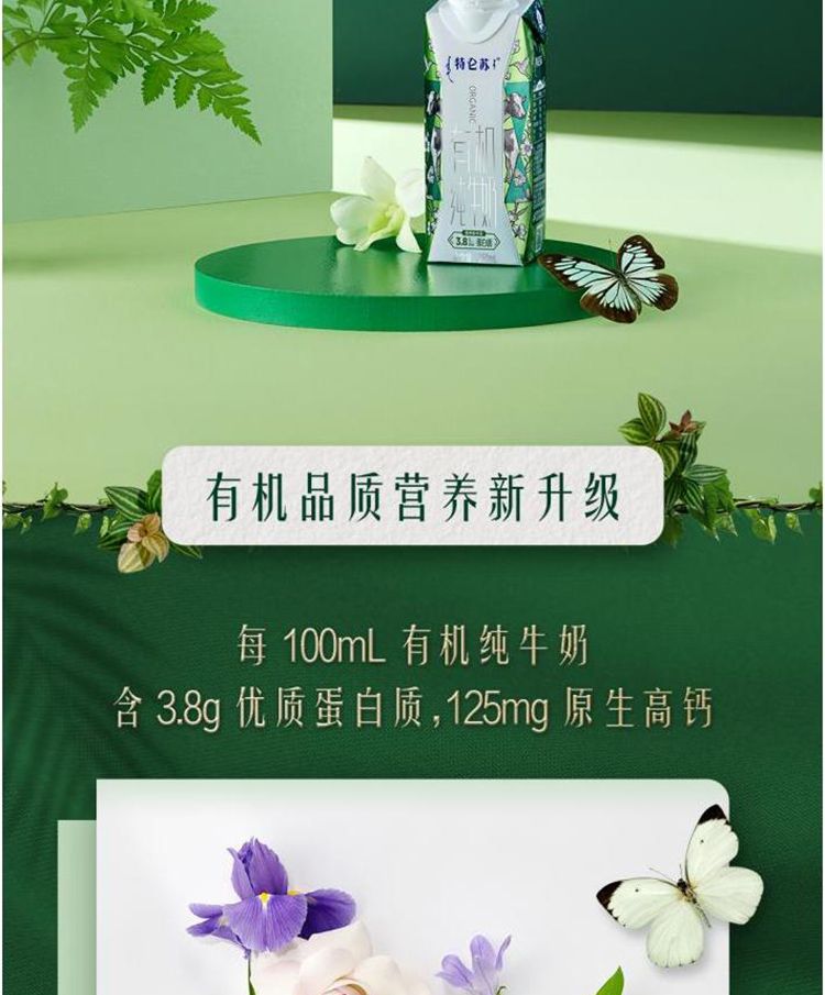 商品名称:特仑苏 有机纯牛奶全脂灭菌乳利乐梦幻盖 250ml×10包(3.8g乳蛋白)