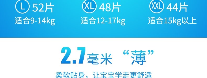 商品名称:美茵(Moloven)悬浮芯拉拉裤 XL48(12-17kg)