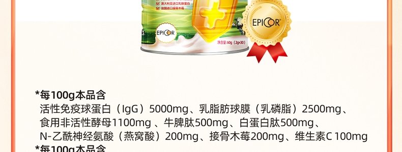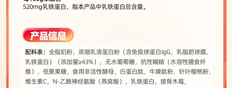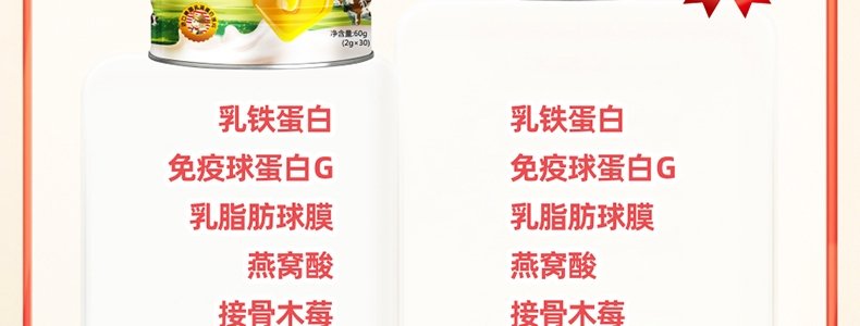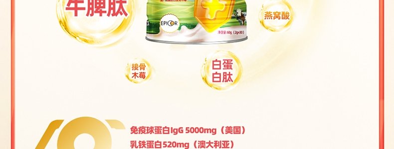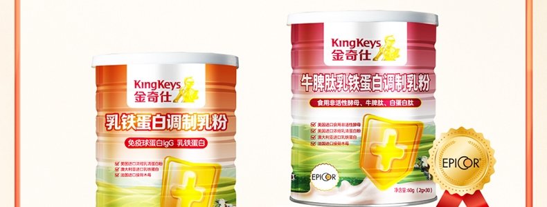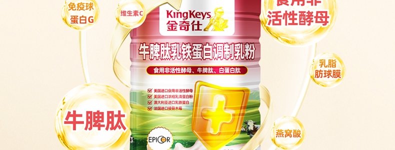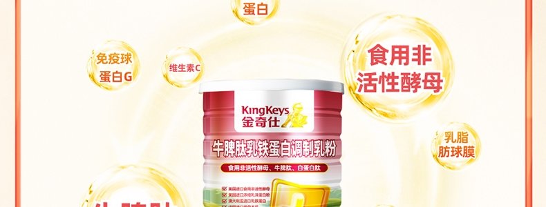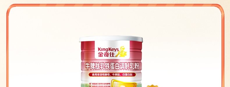 商品名称:金奇仕(kingkeys)牛脾肽乳铁蛋白调制乳粉 60g*3罐(2g/袋×30袋/罐)