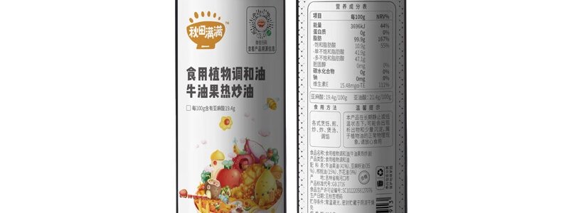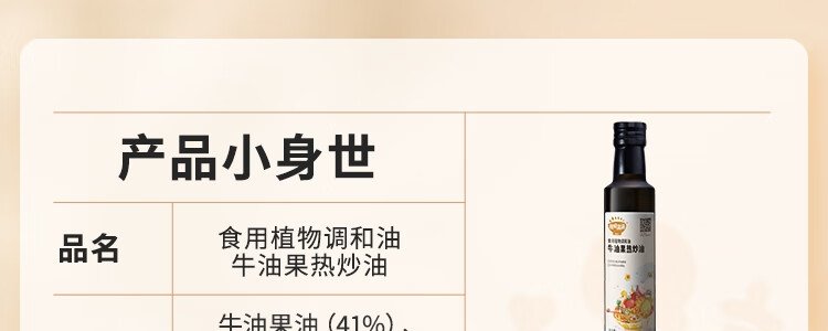 商品名称:秋田满满 食用植物调和油(牛油果热炒油250mL)包装随机