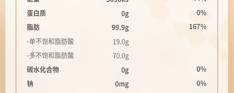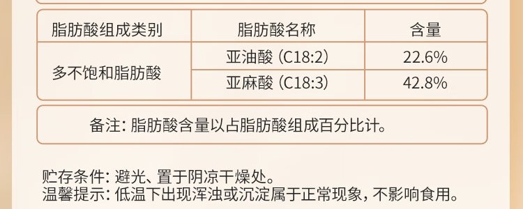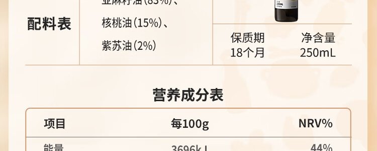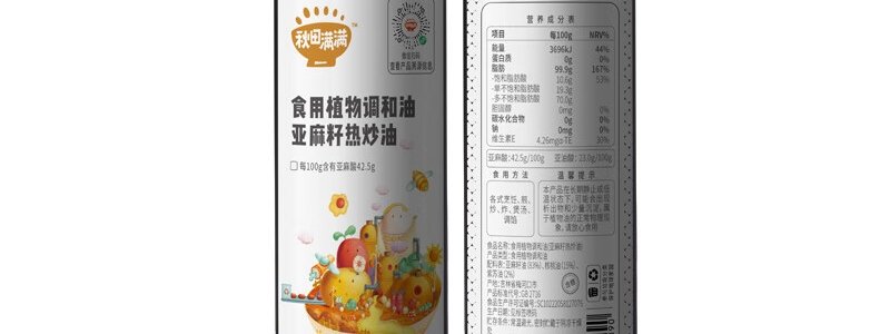 商品名称:秋田满满 食用植物调和油(亚麻籽热炒油250mL)包装随机