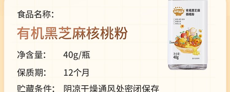 商品名称:秋田满满 有机黑芝麻核桃粉 40g 新旧包装随机