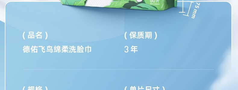 商品名称:德佑(Deeyeo)飞鸟绵柔洗脸巾60片*6包