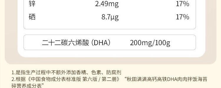 商品名称:秋田满满 鳕鱼猪肉拌饭海苔碎 45g