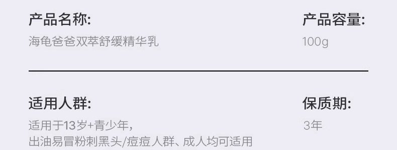 商品名称:海龟爸爸(Hipapa)双萃舒缓精华乳 100ml 13岁+