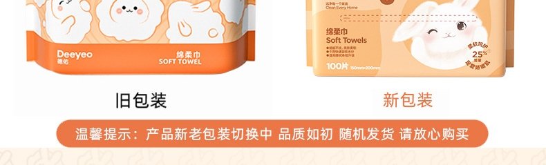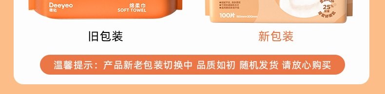 商品名称:德佑(Deeyeo)干湿两用绵柔巾100片*12包